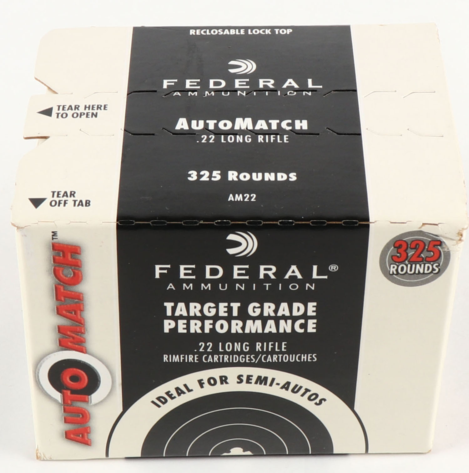 Federal, Auto Match, .22 Long Rifle, 40 Gr. Solid, 1200 FPS, FULL & SEALED, 325rds., 1pc. Black white & red bulk box, box is MINT with minty color, corners are mostly sharp, edges are crisp. Grade: MINT - Value: 10 to 50