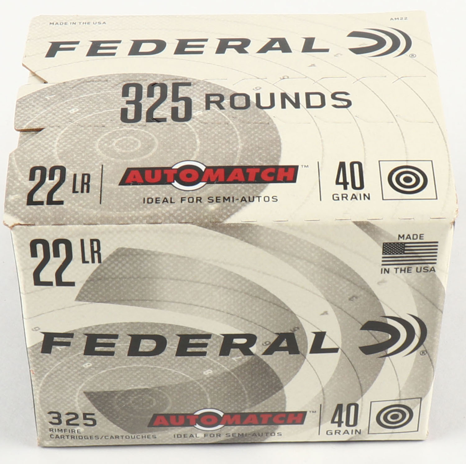 Federal, AutoMatch, .22 Long Rifle, Ideal for Semi-Autos, 40 Grain Solid, 1200 FPS, FULL & SEALED 325 rds. 1pc. Tan & black bulk box, box is MINT with minty color, corners are mostly sharp, edges are crisp. Grade: MINT - Value: 10 to 50
