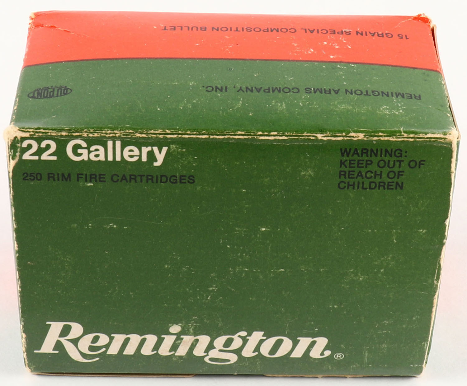 Remington, 22 Gallery, .22 Short, Spatter-Less Gallery, Full, 250rds. 1pc. Green red & white bulk box, box is solid with excellent color, minor shelf & corner wear, very minor edge wear, top flap is solid, ammo is excellent. Grade: Excellent + - Value: 20 to 60