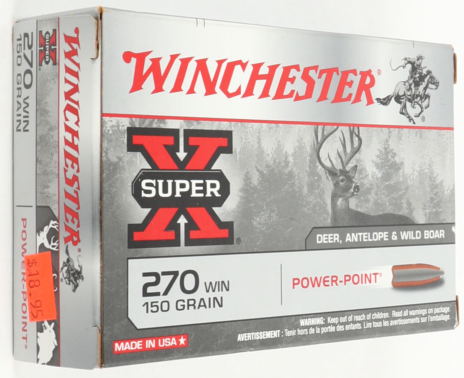 Winchester, Super X, .270 Winchester, 130 Grain Power Point, Full, 1pc. Gray & red box, box is MINT with minty color, corners are sharp, edges are crisp, end flaps are solid, ammo is minty. Grade: MINT - Value: 10 to 40