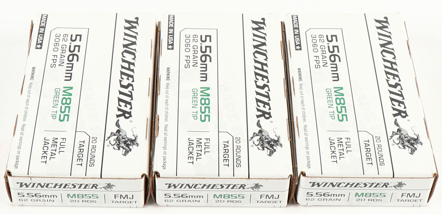 | Winchester, Lot of (3), 5.56mm, 62 Grain M855 Green Tip, Full Me...