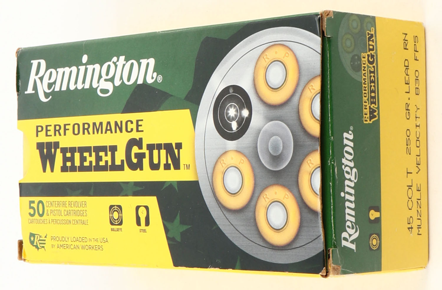 Remington, Performance Wheel Gun, .45 Colt, 250 Gr. Lead RN. Full, 1pc. Multi-colored box, box is very solid, ammo is minty. Grade: MINT - Value: 20 to 60