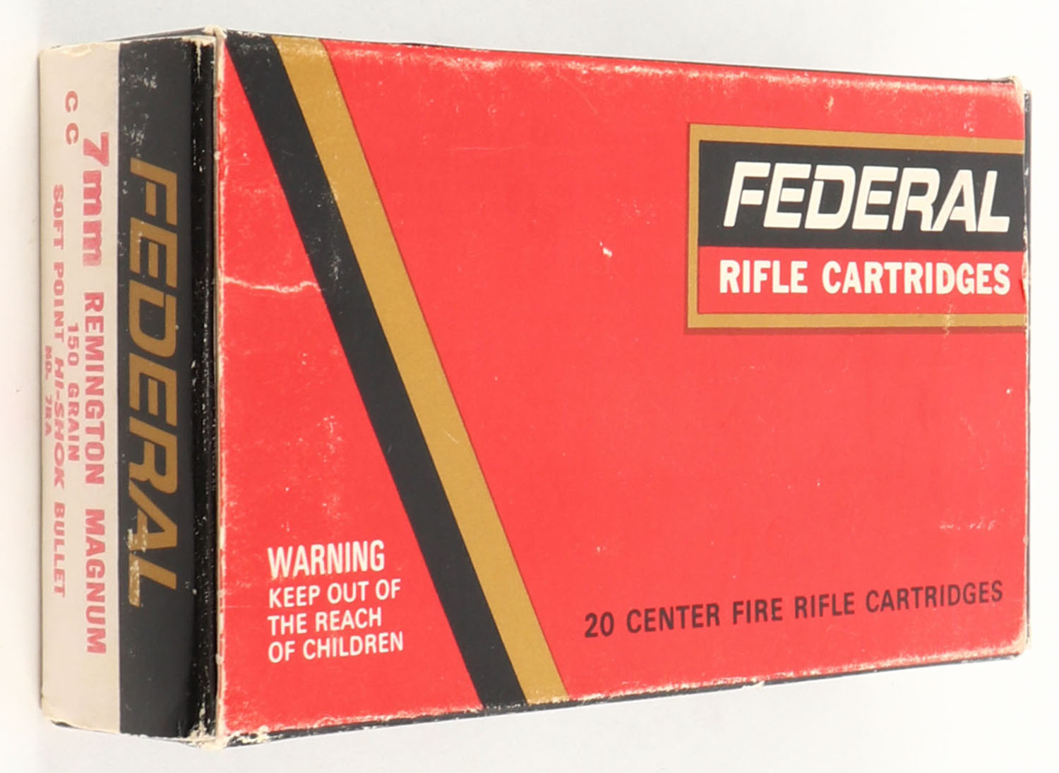 Federal, 7mm Remington Magnum, 150 Grain Soft Point Hi-Shok Bullet, 1pc, Full, box has light scuffing, end flaps are solid, ammo is excellent. Grade: Excellent + - Value: 20 to 60