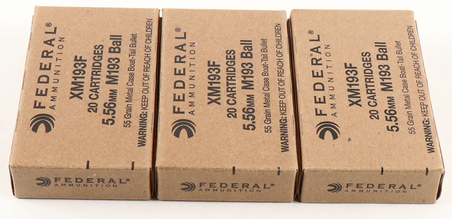 | Federal, Lot of (3), 5.56mm Ball M193, 55 Grain Metal Case Boat-...