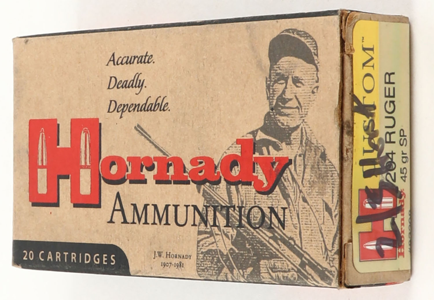 Hornady, Custom, 204 Ruger, 45 Grain SP, Full, 1pc. multi-colored box, box is solid with excellent color, Ammo is excellent. Grade: Excellent ++ - Value: 20 to 60