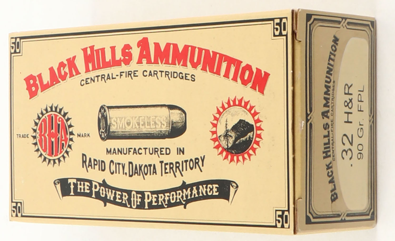 Black Hills, .32 H&R, 90 Grain FPL, Full, 1pc. multi-colored box, box is solid with excellent color, Ammo is excellent. Grade: Excellent ++ - Value: 20 to 60