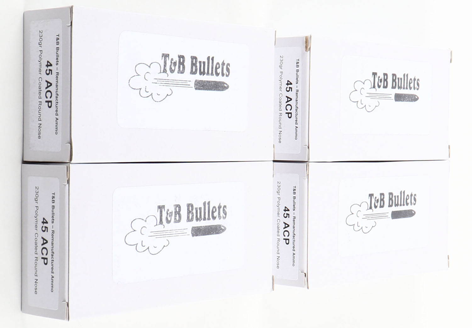 | T&B Bullets, Lot of (4), .45 ACP ammo boxes, Remanufactured Amm...