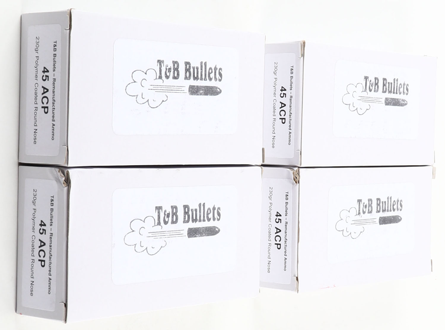| T&B Bullets, Lot of (4), .45 ACP ammo boxes, Remanufactured Amm...