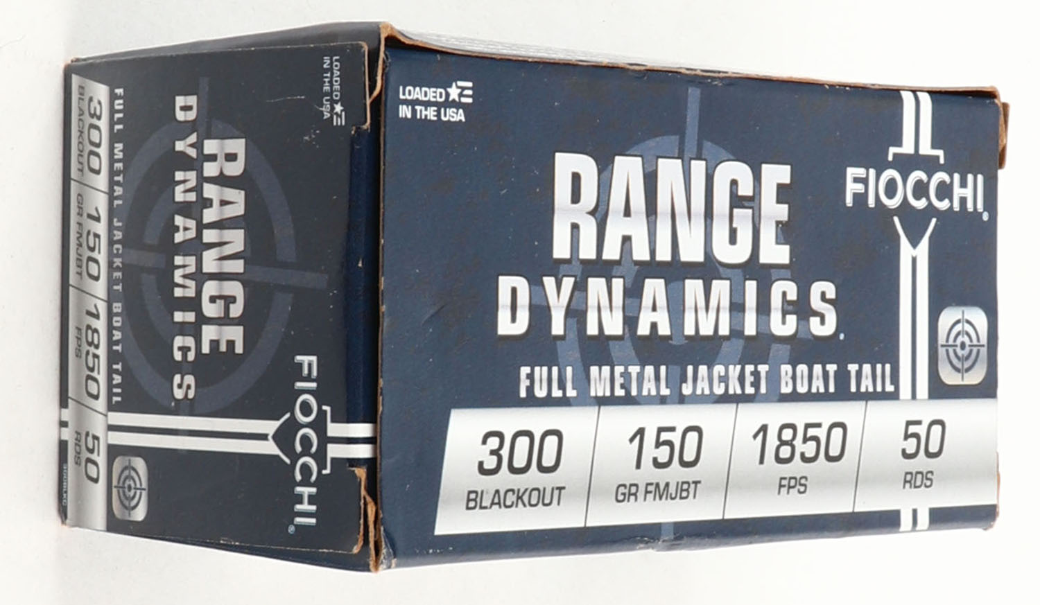 Fiocchi, Range Dynamics, 300 Blackout, 150 Grain FMJBT, Full, 1pc. Multi-colored box, box is solid, has excellent color, Ammo is excellent. Grade: Excellent ++ - Value: 20 to 60