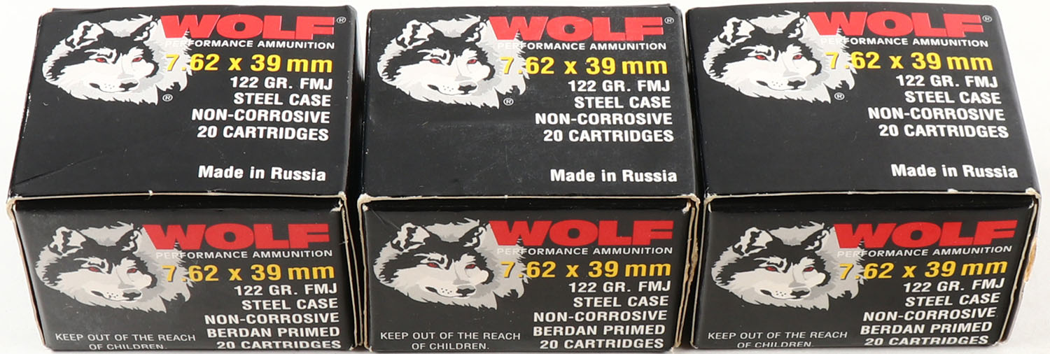 | Wolf, Lot of (3), 7.62x39mm, 122 Grain FMJ Steel Case, Full, 1pc...