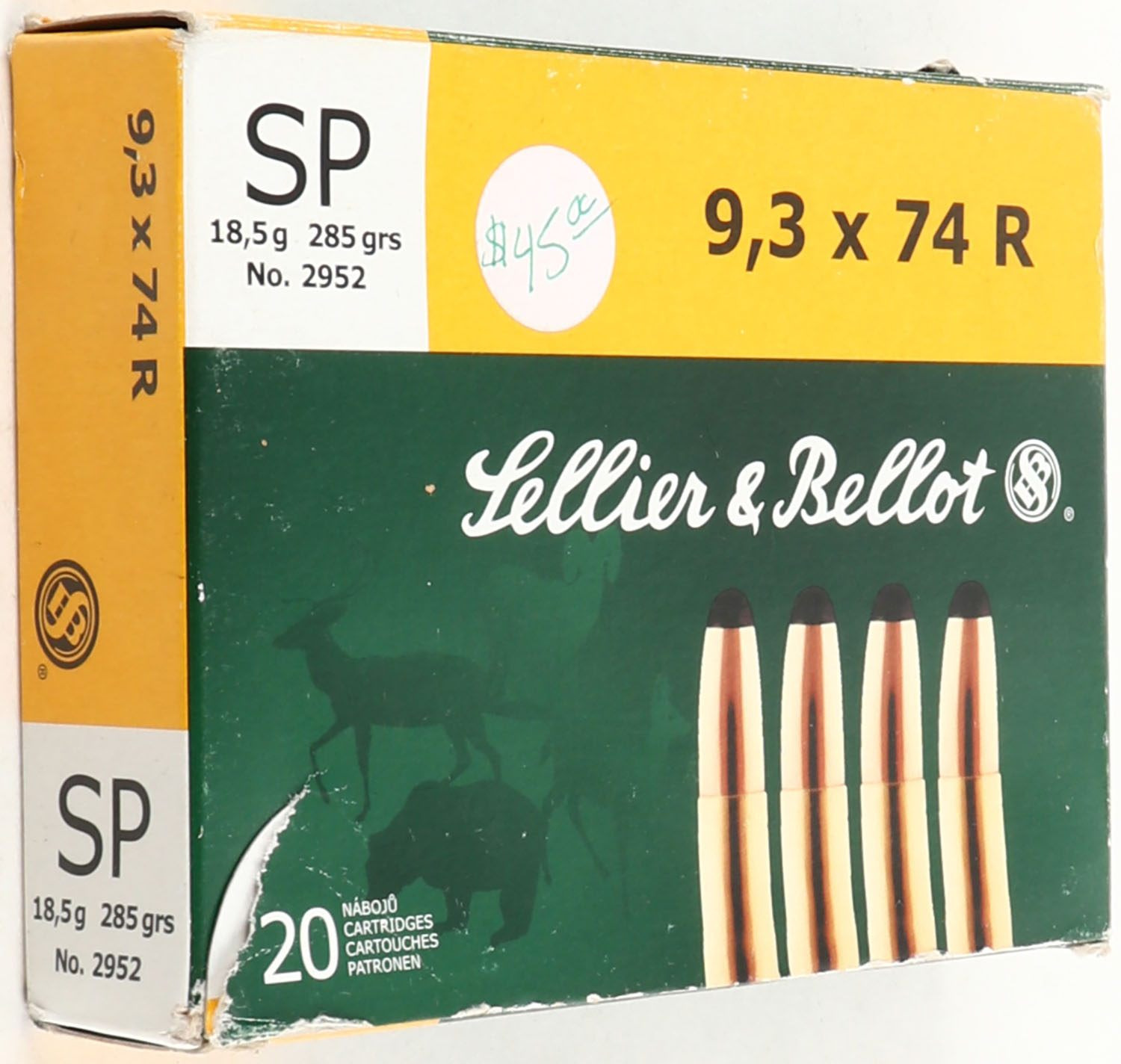 Sellier & Bellot, 9,3x74 R, 285 Grain, Full, 1pc, multi-colored box, box has edge & corner wear, ammo is excellent. Grade: Very Good ++ - Value: 20 to 60