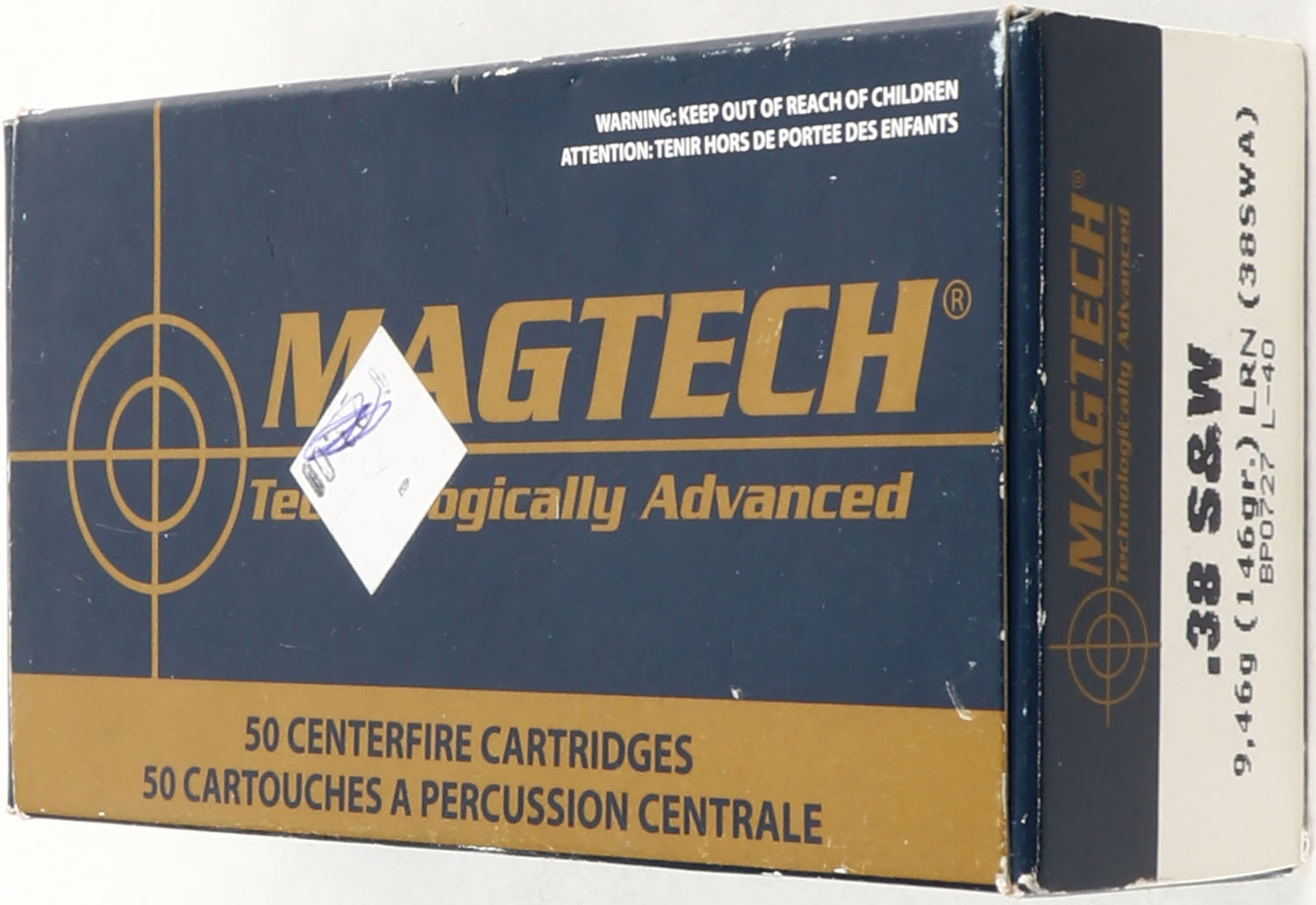Magtech, .38 Smith & Wesson, 146 Grain LRN, Full, 1pc, blue & gold box, box is very solid, ammo is excellent. Grade: Excellent ++ - Value: 10 to 50
