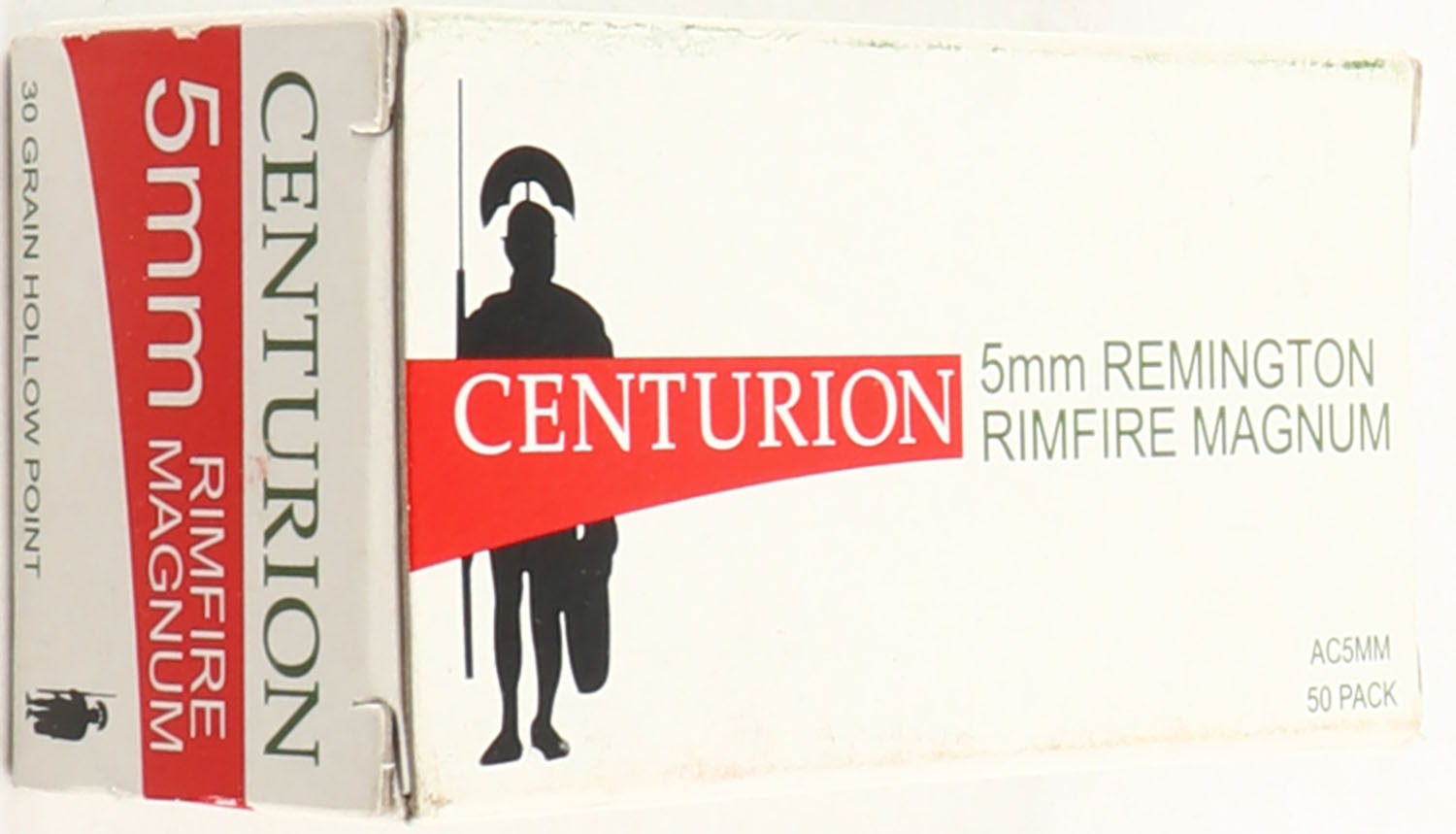 Centurion, 5mm Remington Rim Fire Magnum, 30 Grain Hollow Point, Full, 1pc. White, red & black box, box is MINT with minty color, ammo is mint. Grade: MINT - Value: 20 to 60
