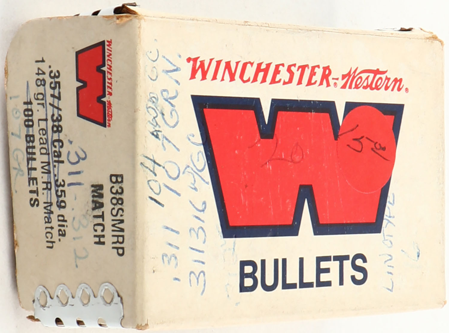 Winchester, .357, .359 Diam, 148 Grain Lead MR, Full of .311 Bullets 107 Grain, White box is solid, bullets are very good. Grade: Good + - Value: 4 to 40