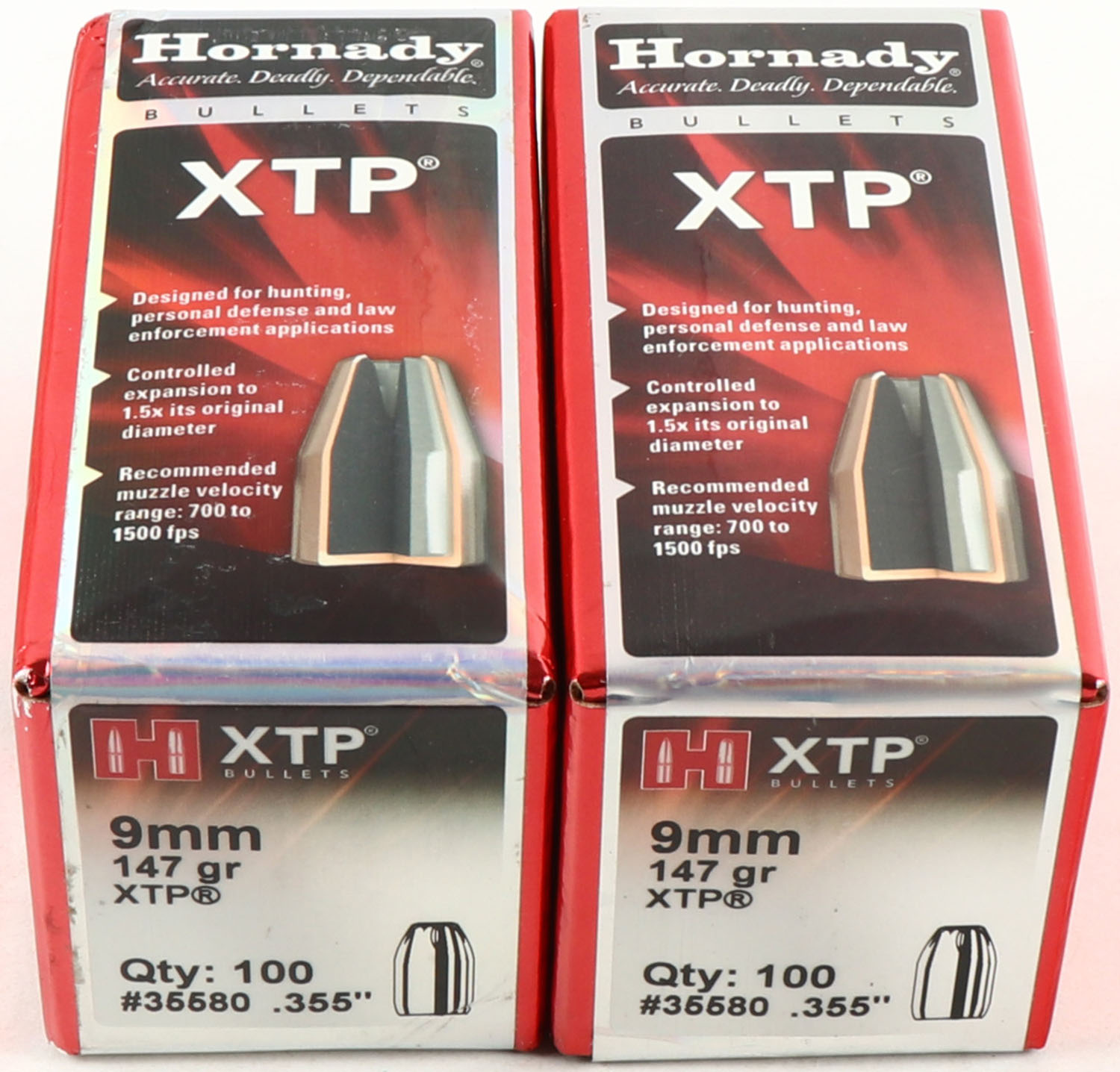 Hornady, XTP, Lot of (2), 9mm, 147 Grain, .355'' Dia., FULL & SEALED, 2pc, boxes are minty. Grade: Excellent ++ - Value: 20 to 80