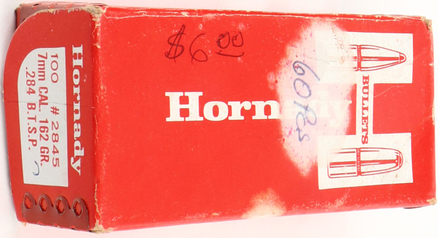 Hornady, 7mm Cal., 162 Grain, .284 BTSP, Appears Partial, 1pc, box is solid, bullets are very good. Grade: Very Good - Value: 8 to 20