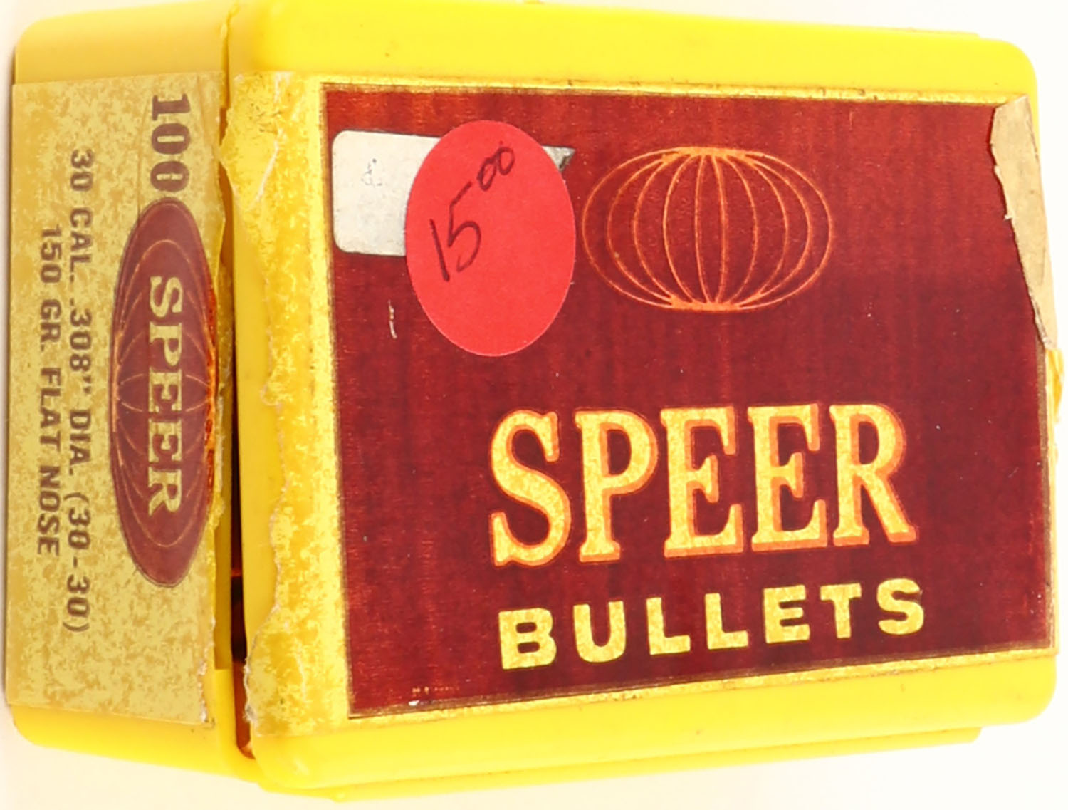 Speer, 30 Cal., 150 Grs. .308'' Flat Nose, Full, 1pc., multi-colored box, box is solid with great colors, bullets are minty. Grade: Excellent - Value: 10 to 40