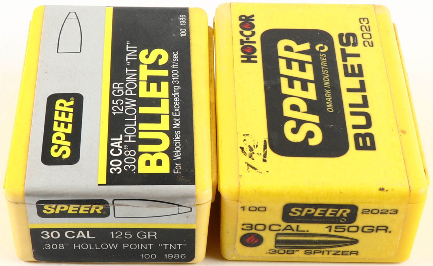 Speer, Lot of (2), 30 Cal., 125 & 150 Grain, .308'', (1) Partial box, (1) Full & Sealed, 1pc, boxes are very solid. Grade: Very Good + - Value: 10 to 40