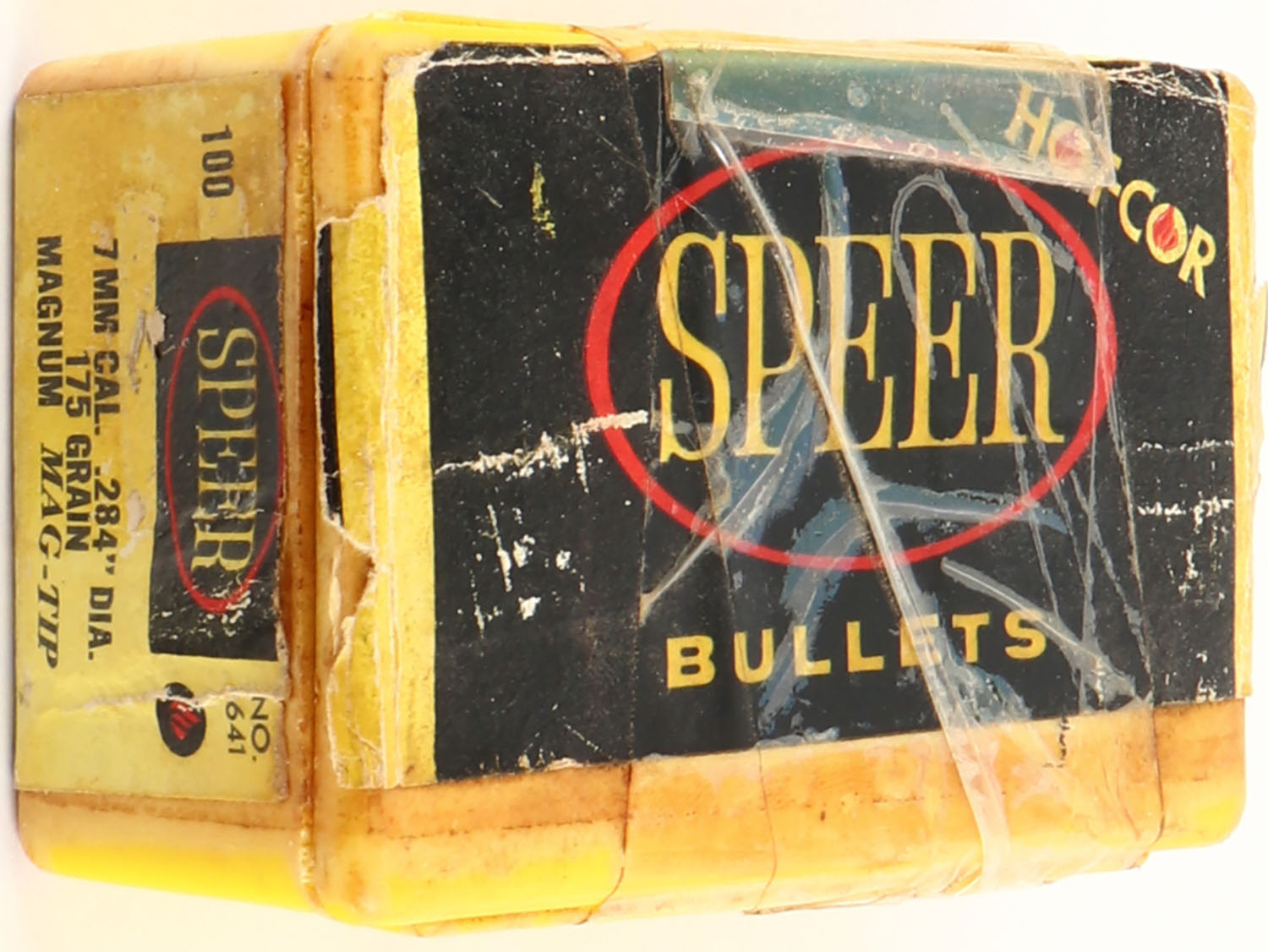 Speer, 7mm Cal, 175 Grain Magnum Mag-Tip .284'' Dia., Full, 1pc, Plastic Yellow box has soiling & tape repairs. Grade: Good - Value: 8 to 40