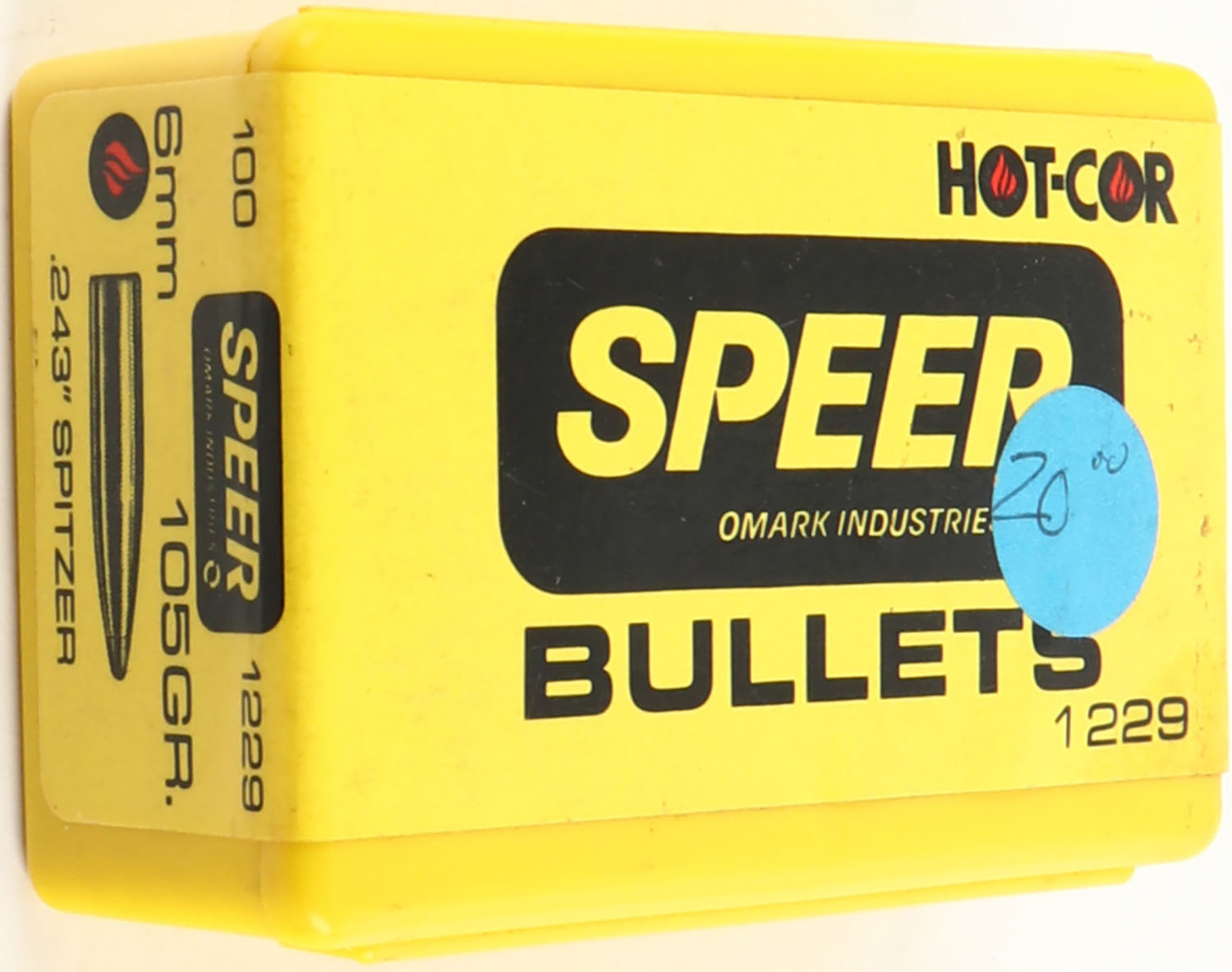 Speer, 6mm, 105 Grain Spitzer, .243 Dia., Full & Sealed, 1pc. Yellow plastic box with yellow & black sealing label, box is solid with excellent color. Grade: Excellent - Value: 10 to 40