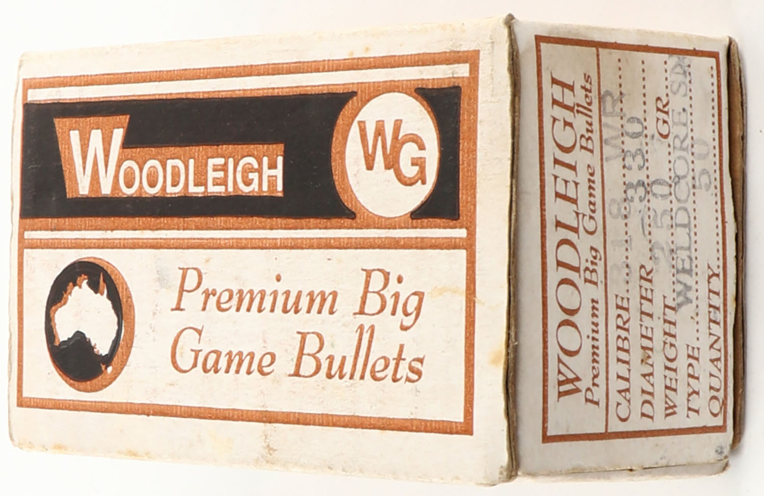 Woodleigh, .318 Cal, 250 Grain, .330'' Dia., Partial, 1pc, multi-colored box, box is solid, bullets are very good. Grade: Very Good - Value: 10 to 40