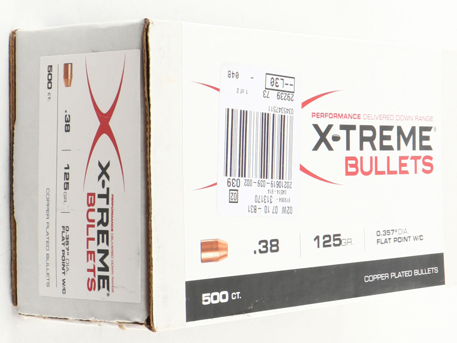 Large lot of X-TREME Bullets, .38 Cal, (0.357), 125gr, flat point W/C, box appears full and displays 500 ct. Grade: Mint - Value: 20 to 100