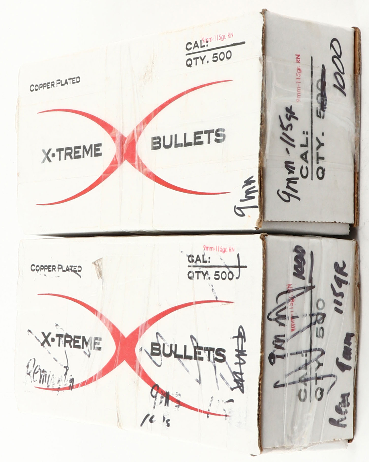 Large lot of X-TREME Bullets, 9mm, 115 gr, (2)boxes appear full and displays 1000 ct each. Grade: Mint - Value: 40 to 150