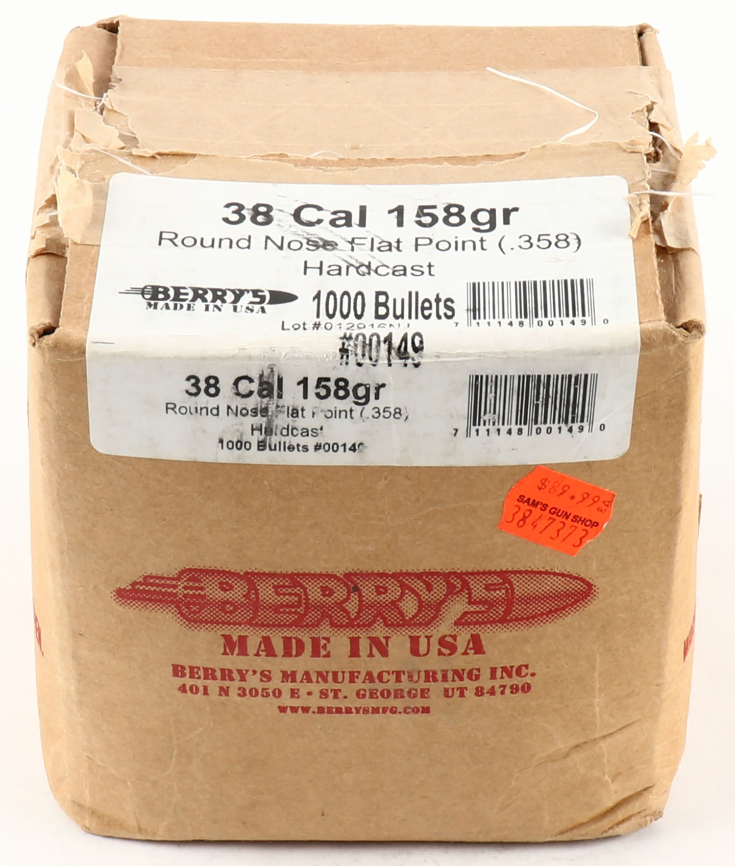 Large lot of Berrys Bullets, 38 Cal, (.358), 158 gr, Round Nose Flat Point Hardcast, box appears full and displays 1000 ct. Grade: Mint - Value: 40 to 120