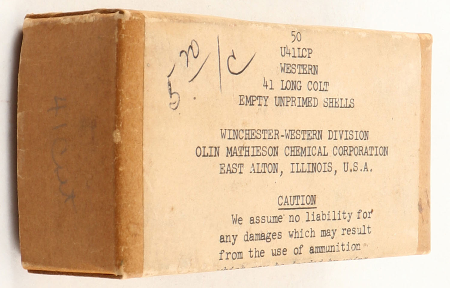 Lot of 50. (1) un opened box of 41 Long Colt, new unprimed cartridges, Winchester. Grade: Mint - Value: 10 to 100