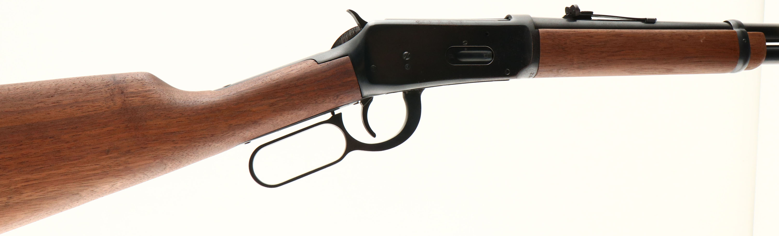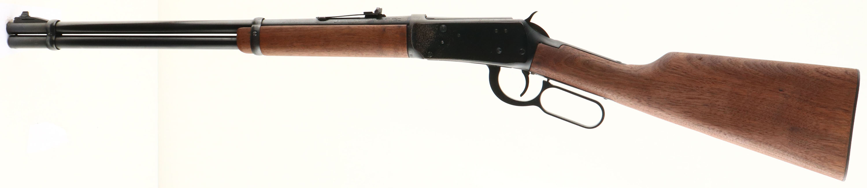 Winchester, Model 94 Carbine, CAL: 32 WIN SPL, MFG: 1965, SN: 2849780, Lever Action Carbine, 20'' Round barrel, Full mag. The replaced straight grip wood stock & forend are excellent, with very few tiny handling marks to the raw wood finish. The metal blue finish rates 90% on the barrel & mag, 80% on the receiver, with loss due to speckling loss mainly on the left side. Bore is excellent. The barrel holds an adjustable rear sight & ramp front sight. Buttstock carries a checkered metal buttplate. FFL or C&R Req. - Value: 400 to 800