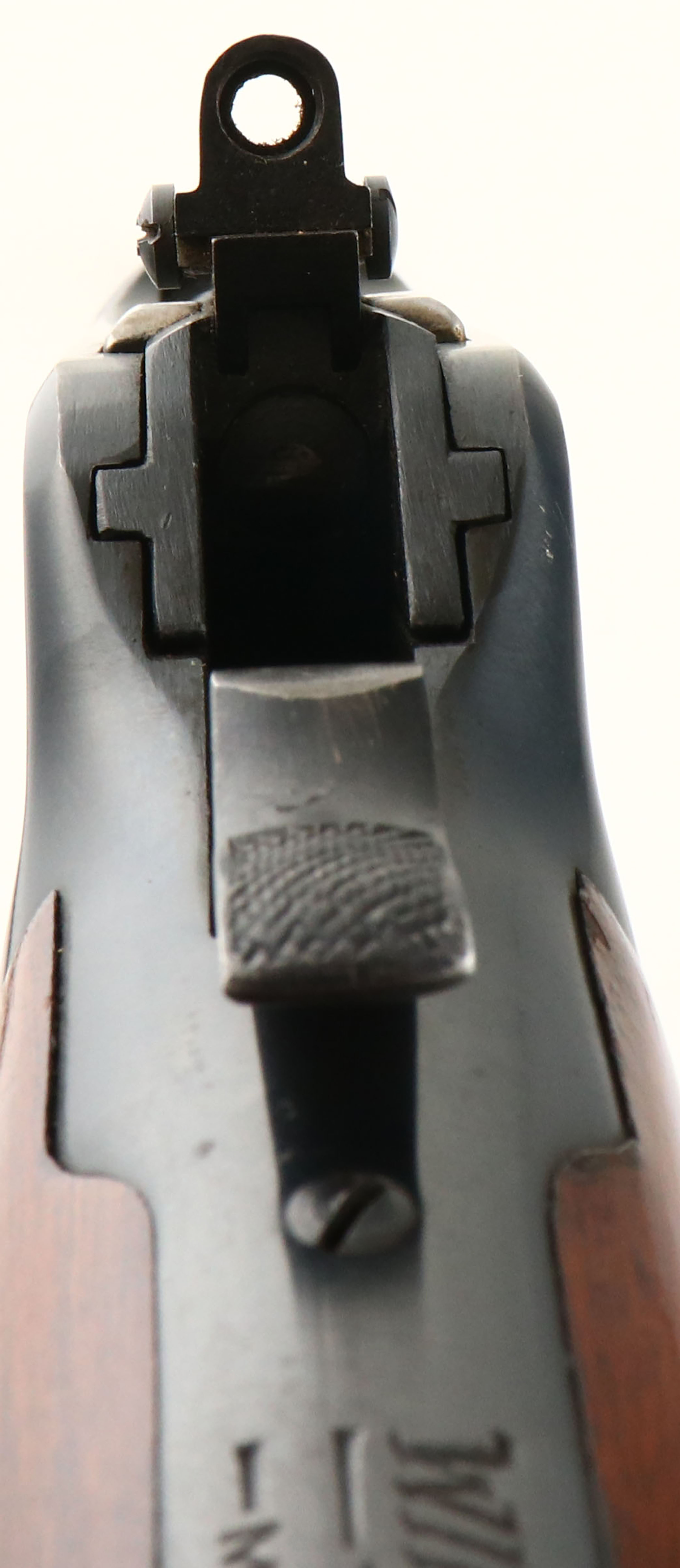 RARE & EXCELLENT Winchester, Model 65, marked 218 BEE, MFG: 1941, SN: 1007321, Lever Action Rifle, 24'' Round barrel, mag holds 7 rounds, This is one of the rarest & fewest made Winchester models of all models produced, with only 5,704 total rifles. The rifle was evolved from the model 58, with production starting in 1933 & ending in 1947. The 218 Bee caliber was added mid production in 1939. While .25-20 caliber rifles are the rarest, 218 Bee examples are in highest demand amongst collectors & command premium values. The original wood stocks on this example are excellent & solid, displaying nearly all the original finish, with few tiny handling marks. The original metal blue finish on the barrel rates 98%, 95% on the receiver, with most wear loss on the belly of the receiver. The rifle carries the rare factory bolt receiver sight, with blank filled rear dovetail & hooded front sight, The factory checkered metal widow's peak buttplate retains 95% of the original blue. Excellent bore. A superb, all original condition, & rare model 65 in the most desirable caliber. Definitely a collector's quality rifle. FFL or C&R Req. - Value: 6500 to 9500