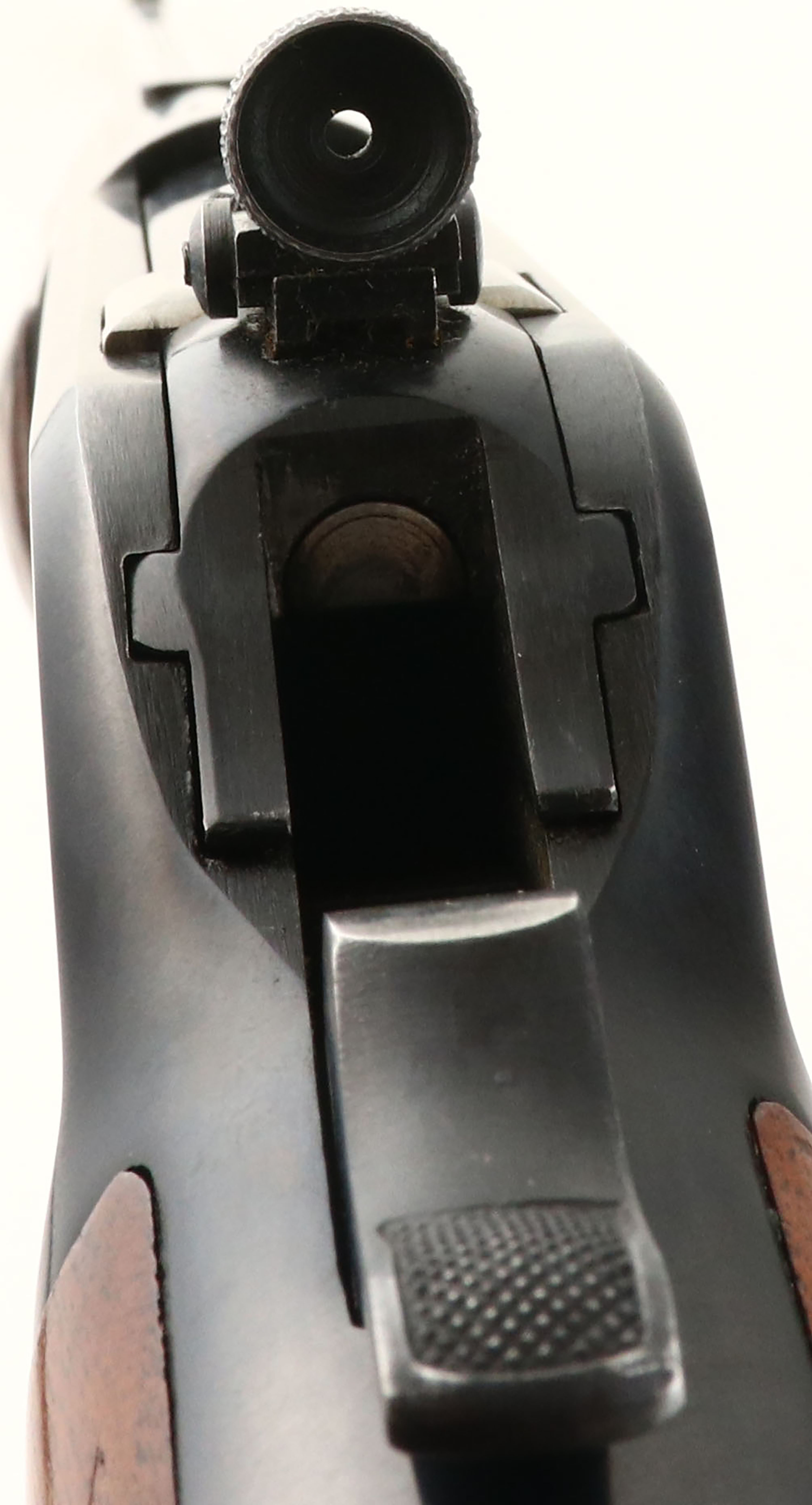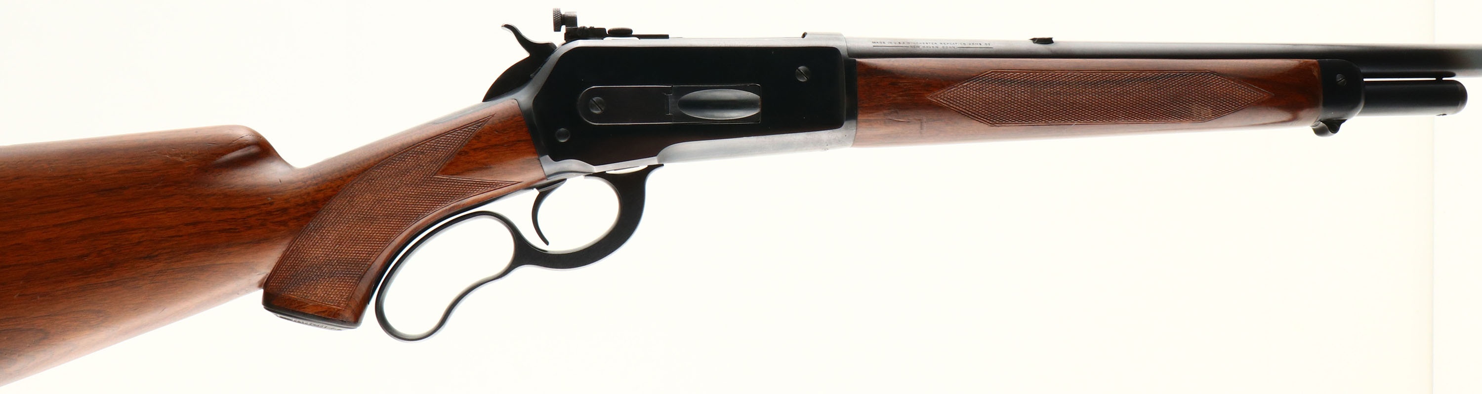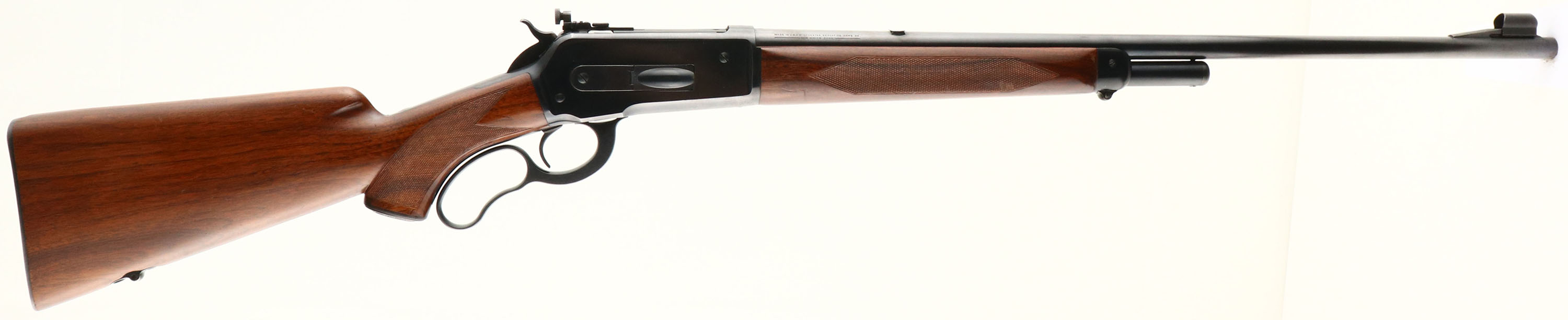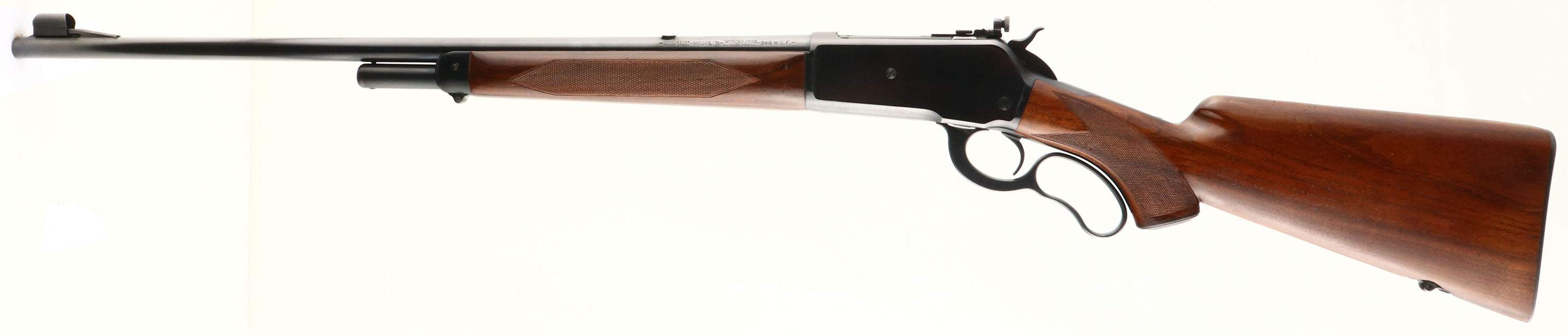 FANTASTIC Winchester, Model 71 Deluxe, Long Tang, marked 348 W.C.F., MFG. 1936, SN: 8980 (2nd Year Production), Lever Action Rifle, 24'' Round barrel, 2/3 tube mag holds 4 cartridges, Improved model 1886, with just 47,254 made & only 16,900 as Long tangs. Fewer deluxe models were produced, which are now in high demand amongst collectors & command premium values. The original checkered & capped pistol grip wood stocks are near excellent & solid. The stocks have a few minor scuffs or tiny contusions to the excellent original finish. The original metal blue finish is 98% on receiver, barrel & mag. The receiver carries the rare 100 & 200 yard adjustable breech bolt peep sight, while the barrel carries a blank filled rear dovetail & hooded front ramp sight. Stock carries the factory widow's peak checkered metal buttplate. Excellent bore. Factory sling mounts. A rare Winchester in the most collectible caliber & with the desirable long tang, breech peep & deluxe checkered wood. FFL or C&R Req. - Value: 3000 to 5000