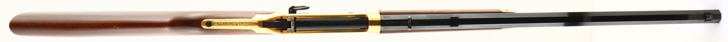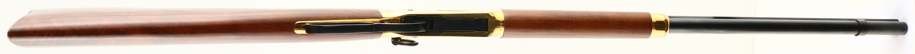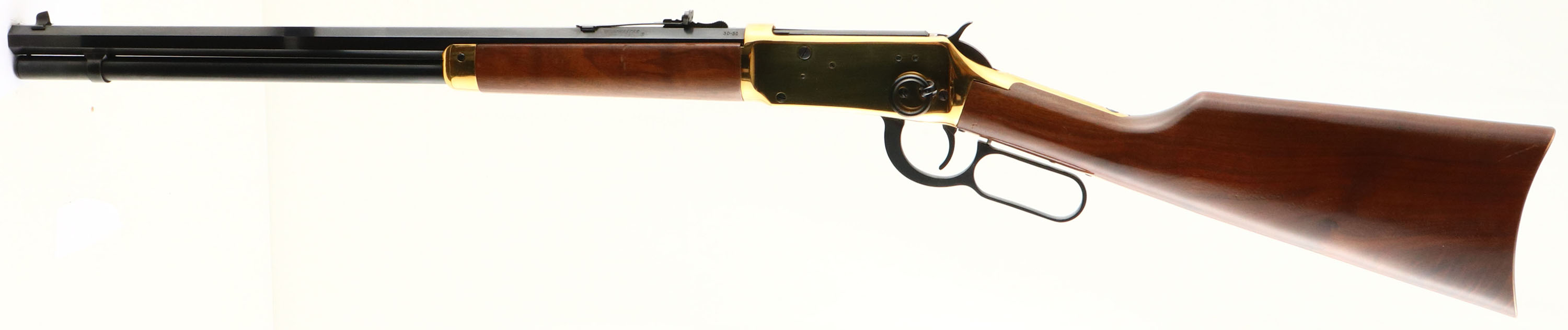 BOXED Winchester, Model '66 Centennial 94, marked .30-30 WIN., MFG. 1966, SN: 1338, Lever Action Short Rifle/Carbine, 20'' Octagon barrel, full mag, The original straight wood stock & forearm are excellent, with a few light scratch marks & a handful of small dings that have broken the original finish & into the wood. The metal blue rates 98% overall, Gold tone (brass) forend cap, buttplate & receiver, with receiver showing some light scratches. The barrel is fitted with original sights. Bore is excellent. Saddle ring. Comes in the original box, with correct label. Outer sleeve has tears, edge wear & a missing piece. FFL or C&R Req. - Value: 600 to 1000