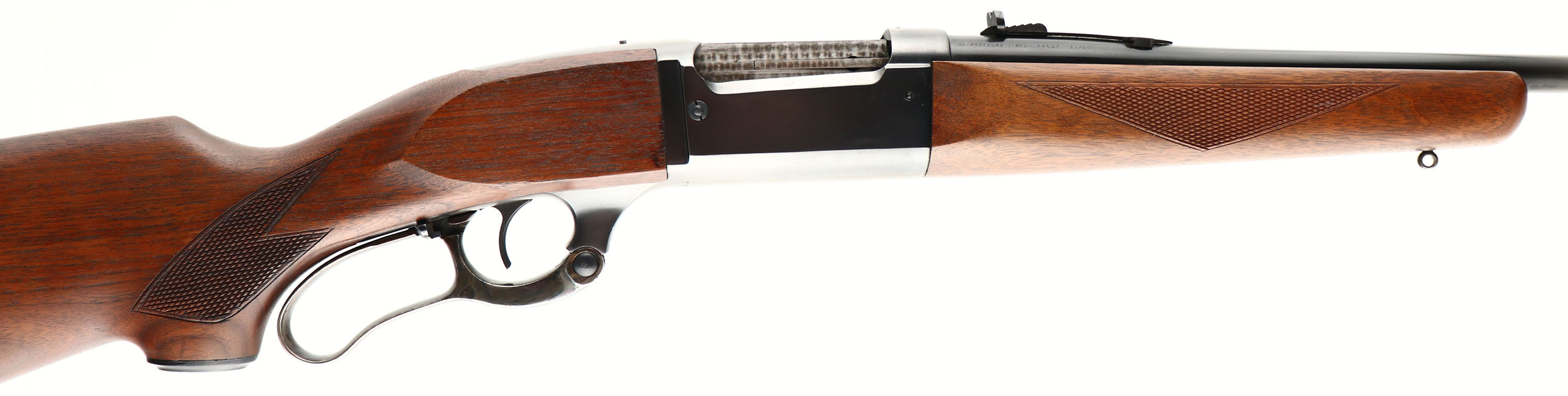 Savage, Model 99, CAL: 300 SAV, MFG: 1954, SN: 750926, Lever Action Rifle, 24'' round barrel. This rifle has been very nicely & professionally restored. The original checkered & capped pistol grip wood stock & beavertail forend are excellent. The wood was cleaned, but does not appear to have been sanded, except on the left side of the forend where it is slightly dished in the area of the back point of the checkering. There are almost no handling marks remaining to the excellent finish. There are a few tiny chips at the toe edge of the stock. The original metal blue finish on the receiver rates 98%, while the refinished barrel is slightly darker, also rating 98%, with some thinning of the stampings during finish prep. The case-hardened lever retains very nice case-colors. Bore is excellent. The barrel holds an adjustable rear sight & ramp elevated blade front sight. The original grooved metal buttplate was reblued, with some light cleaned pitting under the blue. Jeweled bolt. Sling eyelet. An excellent overall appearance. FFL or C&R Req. - Value: 600 to 1200