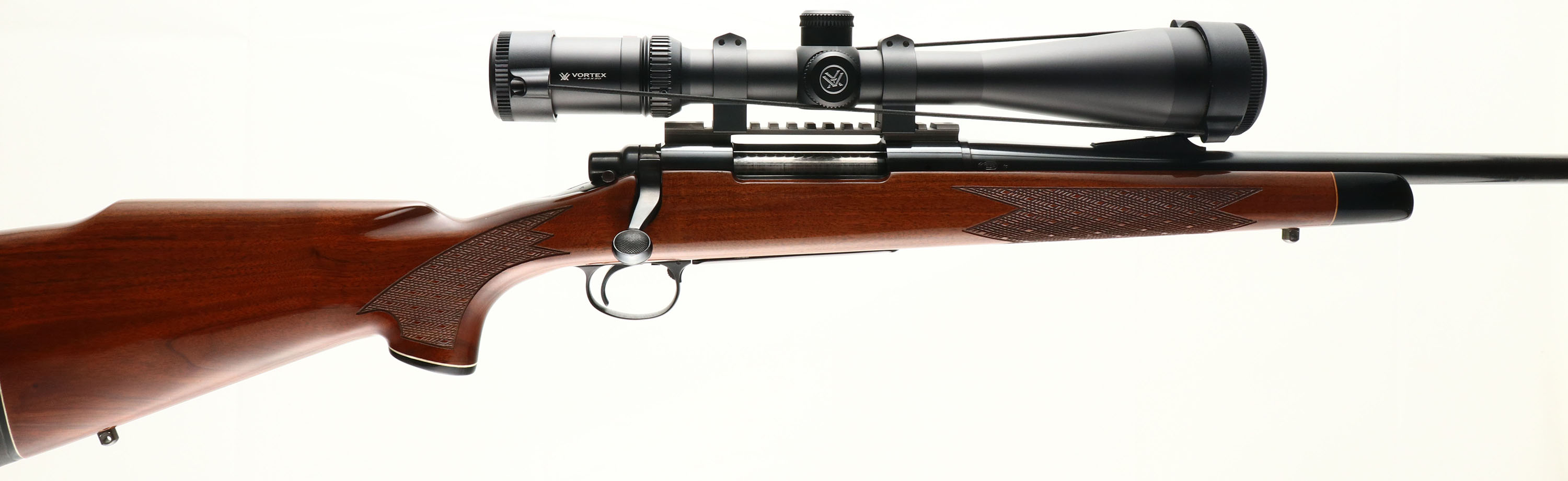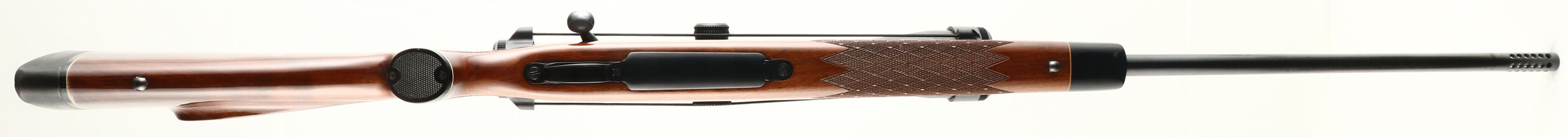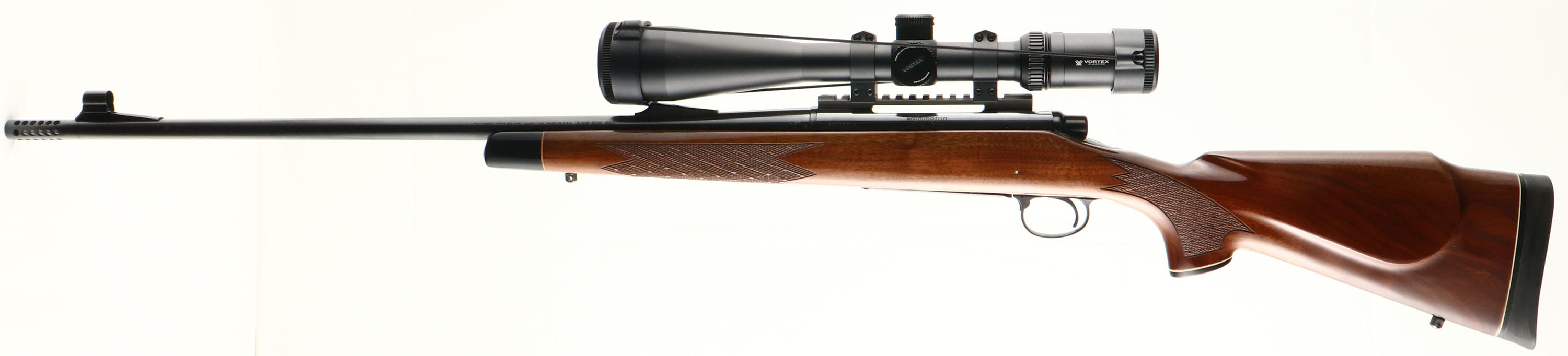 Remington, Model 700 , CAL: 8mm REM MAG, MFG:1979, SN: A6756808, Bolt Action Rifle, 24'' round barrel, 25 3/4'' with comp. The original cheeked, hand skip-line checkered & capped pistol grip Monte Carlo style wood stock is excellent, with just a couple of tiny handling marks to the original high gloss finish. The stock carries an ebony toned forend tip & plastic pistol grip cap. The original metal blue finish rates 98% overall. Bore is excellent. The receiver holds a Vortex Viper 6-24X50 scope mounted on a picatinny rail, while the barrel carries the rear ramp, but no sight & a hooded front sight. Stock carries a Remington solid recoil pad. Sling studs. An overall excellent condition rifle, with a high quality scope. FFL Req. - Value: 1200 to 1500