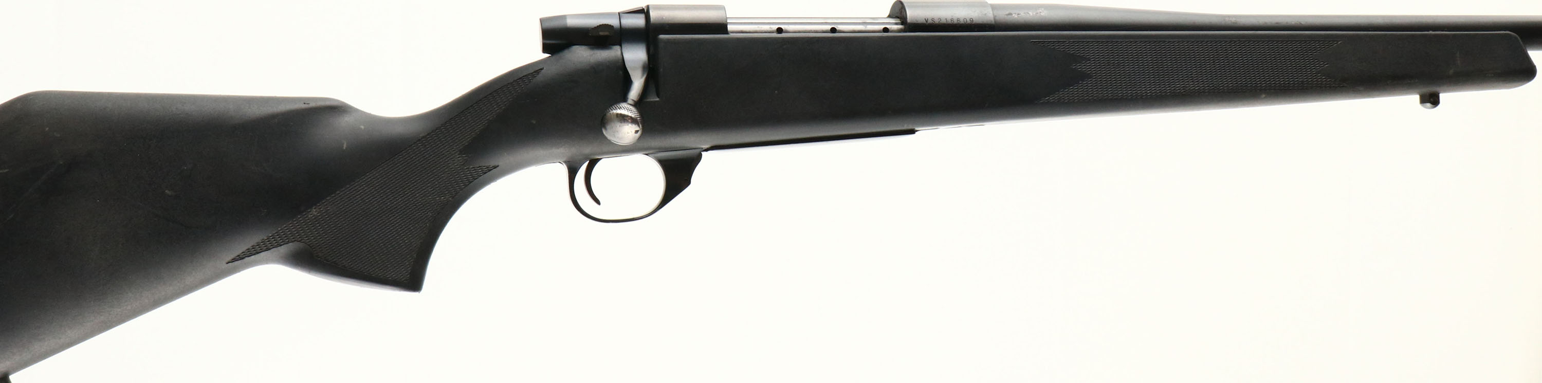 Weatherby, Vanguard, CAL: .300 WIN MAG, MFG: Modern (2006-09), SN: VS216609, Bolt Action Rifle, 24'' barrel. The original cheeked, checkered & flat pistol grip Monte Carlo synthetic stock is very good, with several minor to small handling marks, scuffs & scrapes. The original metal blue finish rates 90% on the receiver, 85% on the barrel, with areas of light specking & some scrapes. Bore is excellent. The rifle has open scope base holes on the top of the recover & no open sight provisions. The stock carries the original Weatherby solid recoil pad. Sling studs. FFL Req. - Value: 400 to 600