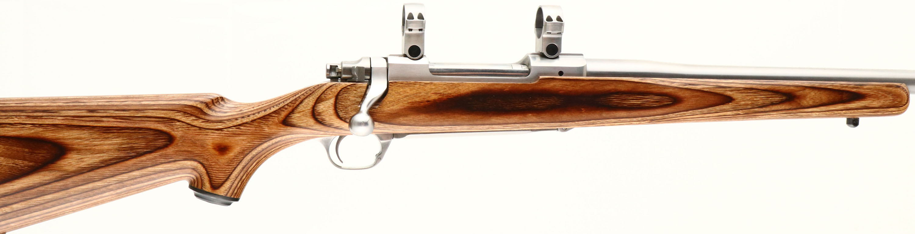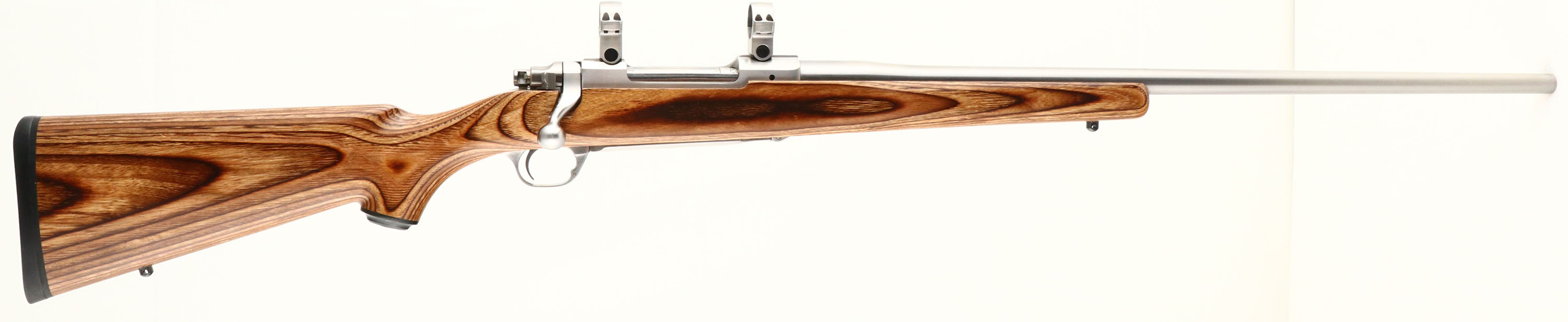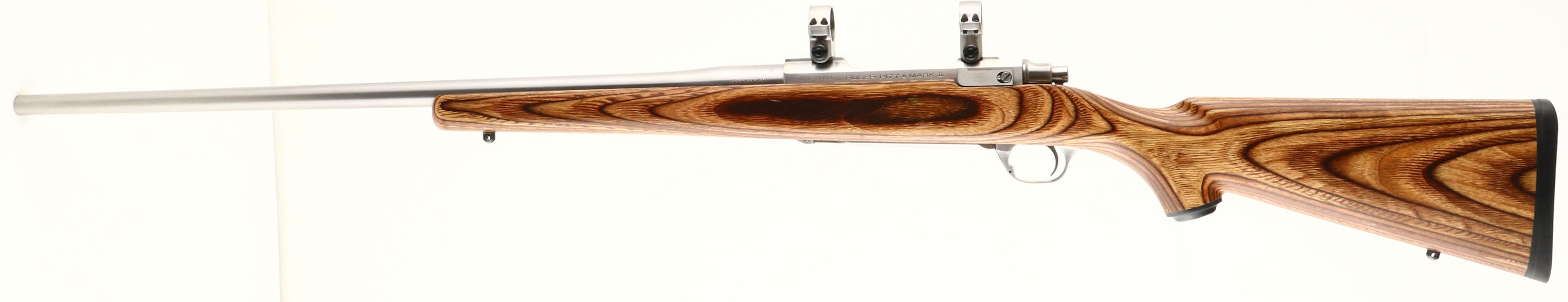 Ruger M77 Mark II, CAL: 300 Win Mag, MFG: Modern, SN: 785-19748, Bolt Action Rifle, 24'' stainless steel barrel. The original capped pistol grip, laminated wood stock is excellent. There are very few tiny handling marks to the original finish. The factory stainless steel metal finishes are excellent. Bore is excellent. The receiver holds stainless steel scope rings mounted on integral scope mounts machined directly on the solid-steel receiver. No open sight provisions on barrel. Stock carries a factory Ruger solid recoil pad. Sling studs. An excellent hunting rifle ready for your scope mounting. FFL Req. - Value: 500 to 800