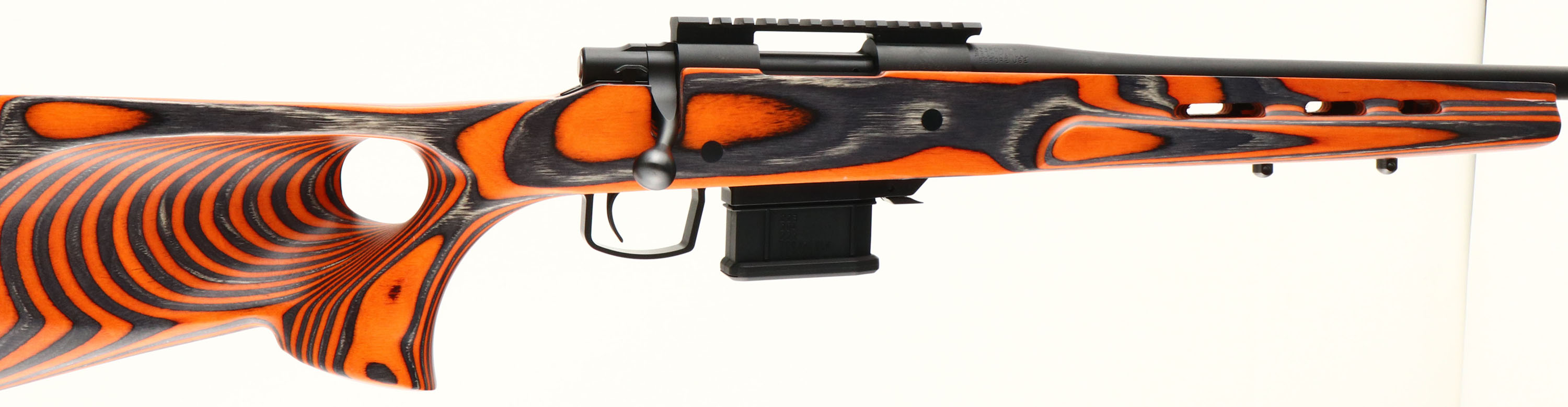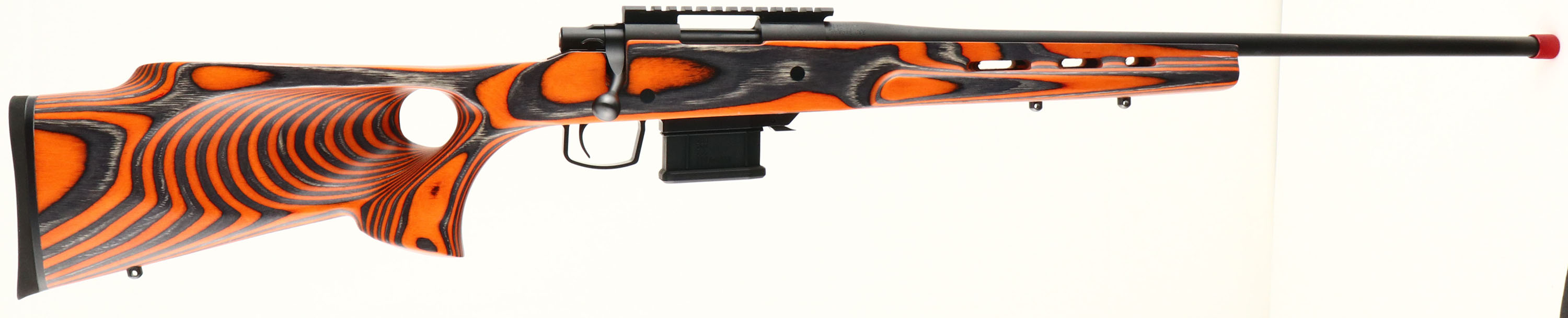 Howa, Model 1500, CAL: 223 REM, MFG: Modern, SN: B663926, Bolt Action Rifle, 22'' 1-8'' barrel. The thumbhole & flat pistol grip, gray & orange laminated wood stock is excellent, with a few tiny handling marks to the original finish. The original metal black finish rates 98% overall. Bore is excellent. Muzzle: Threaded 1/2x28. The receiver is fitted with a picatinny rail & no open sight provisions on the barrel. Stock carries a Boyd recoil pad. Thumb Safety. Detachable mag. Sling studs. An excellent overall condition hunting rifle. FFL Req. - Value: 400 to 800