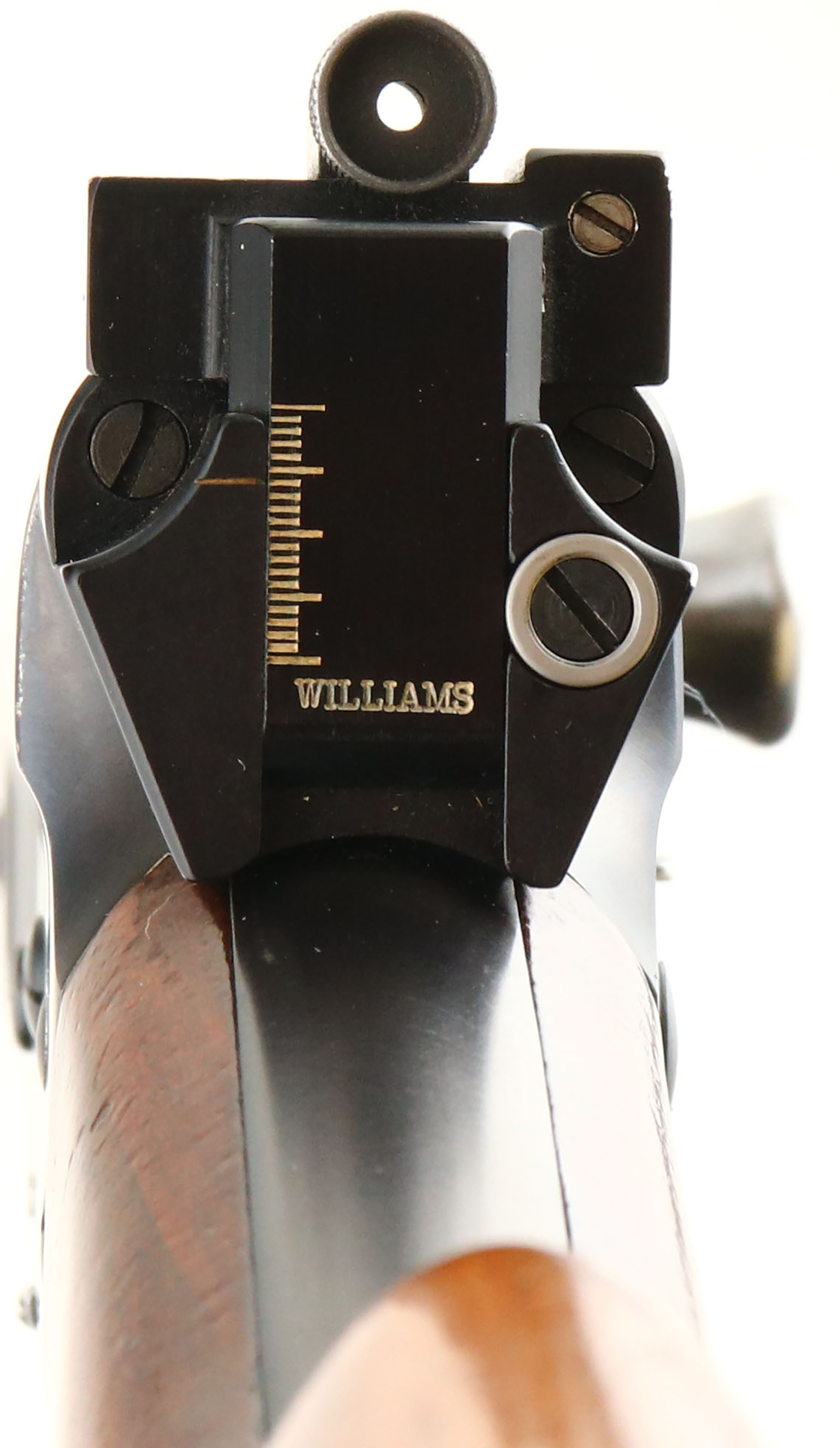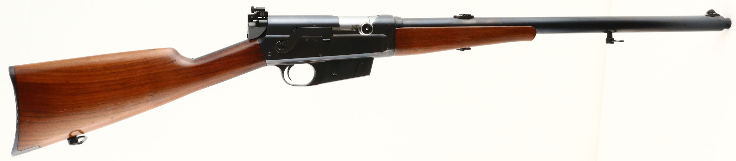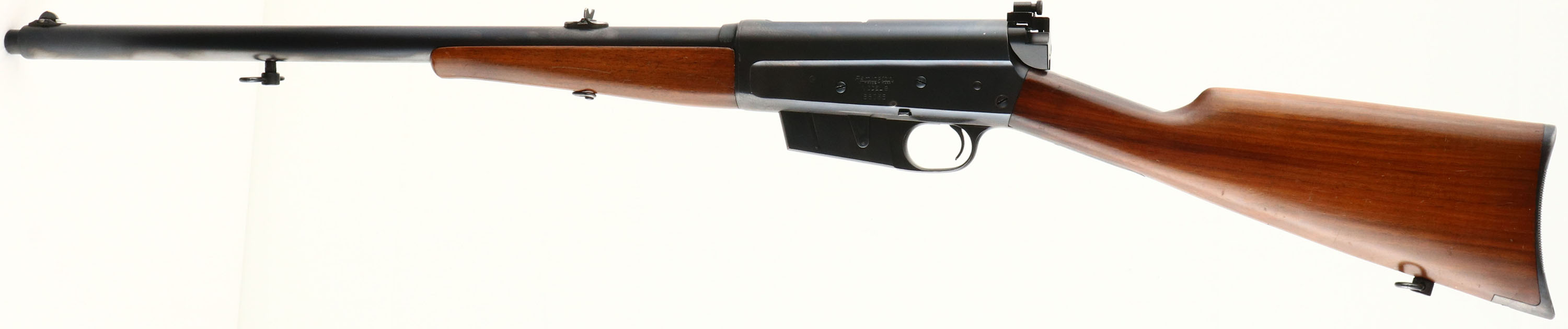Remington, Model 8, .30 Rem Cal, MFG. 1933, SN: 66735, Semi-Auto Rifle, 22'' barrel. The left side of the barrel carries not only the manufacture date stampings, but a repair code from where the rifle was returned to the factory for unknown repair or upgrade. These repair stampings typically are a 3 or 4 digit code ending in ''3''. In this case, I believe the repair or upgrade was for blue restoration or at least it was a part of the process as the blue has been nicely restored to Remington standards & color, with a bit of thinning to some of the original stampings. The blue rates 98% overall & is excellent. The original straight grip & schnabel forend stocks are excellent, with both appearing to carry the original finish. There are minor scuffs, scratches & contusions to the wood & finish. Bore is excellent. The receiver is fitted with a Williams receiver/tang sight that fits into the factory tang screw hole, but also requires two additional holes to be added to the receiver for mounting & stability. The barrel is fitted with a folding two leaf rear sight on oval base & a Lyman half moon blade front sight, with ivory bead. Stock carries the popular bottom tang crescent metal buttplate. 5 round fixed magazine. Tight action. Sling loops. An overall excellent appearing rifle. FFL or C&R Req. - Value: 700 to 1000