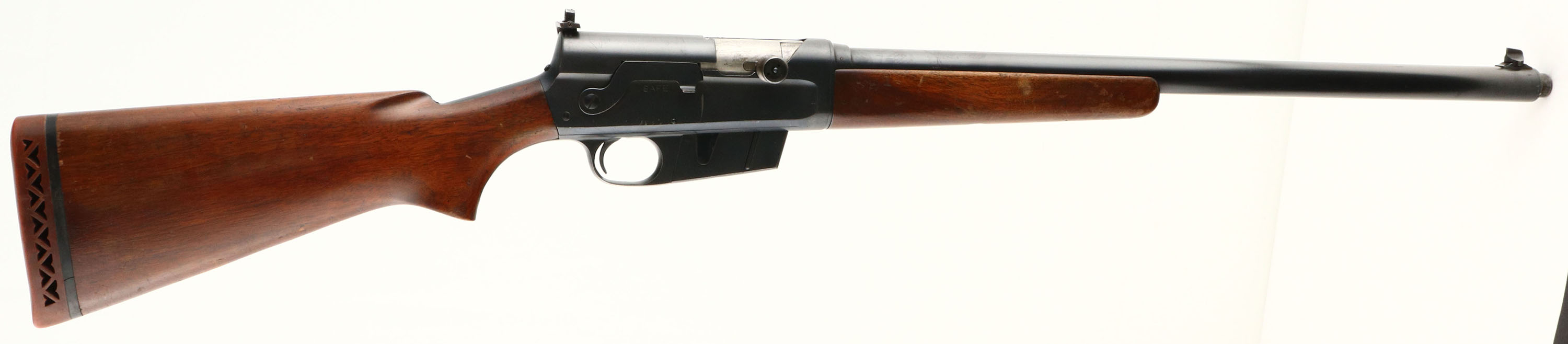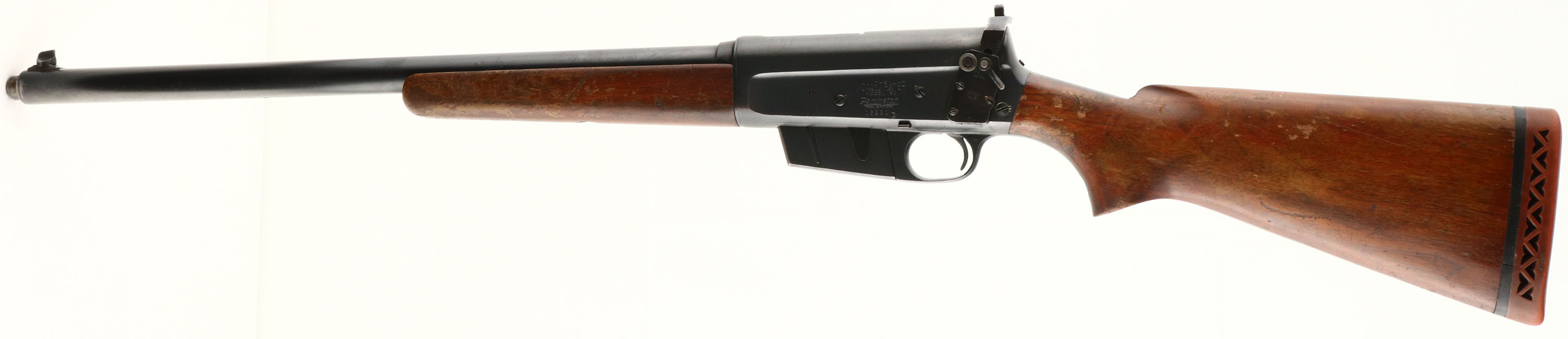 RARE Remington, Model 81 F.B.I. Rifle, .30 Rem Cal, MFG. 1941, SN: 16231, Semi-Auto Rifle, 22'' barrel. In mid 1938, Remington & the Federal Bureau of Investigation worked together to develop a replacement for the Winchester Model 1907s, that were then in service. The FBI had become dissatisfied with the .351 Self-Loaders & sought Remington to come up with an alternative service rifle that could produce similar ballistics, but function more reliably. The Model 81 FBI rifle was Remingtons answer. An excellent history & production development of these rifles can be found in John Henwoods ''The Great Remington 8 & Model 81 Autoloading Rifles''. The FBI rifles, in actuality, was only a slightly modified version of Remingtons production Model 81 rifle. Aesthetically, most would not notice the subtle differences that were made to the guns to meet the FBI requirements. That is why many a hunter or gun trader has owned, used & traded one of these rifles without knowing they had a surplused FBI rifle. There were actually two variations, the first more easily distinguishable, the later more closely related to a standard 81. Of the early type, the most prominent features are the unique receiver markings and the Lyman 41R receiver sight. Please take note that the Early-Type comes in two configurations. One was manufactured without rear sight holes altogether, only a smooth barrel jacket. Another configuration was manufactured with rear sight holes & a factory installed Lyman #12 rear sight-blank.