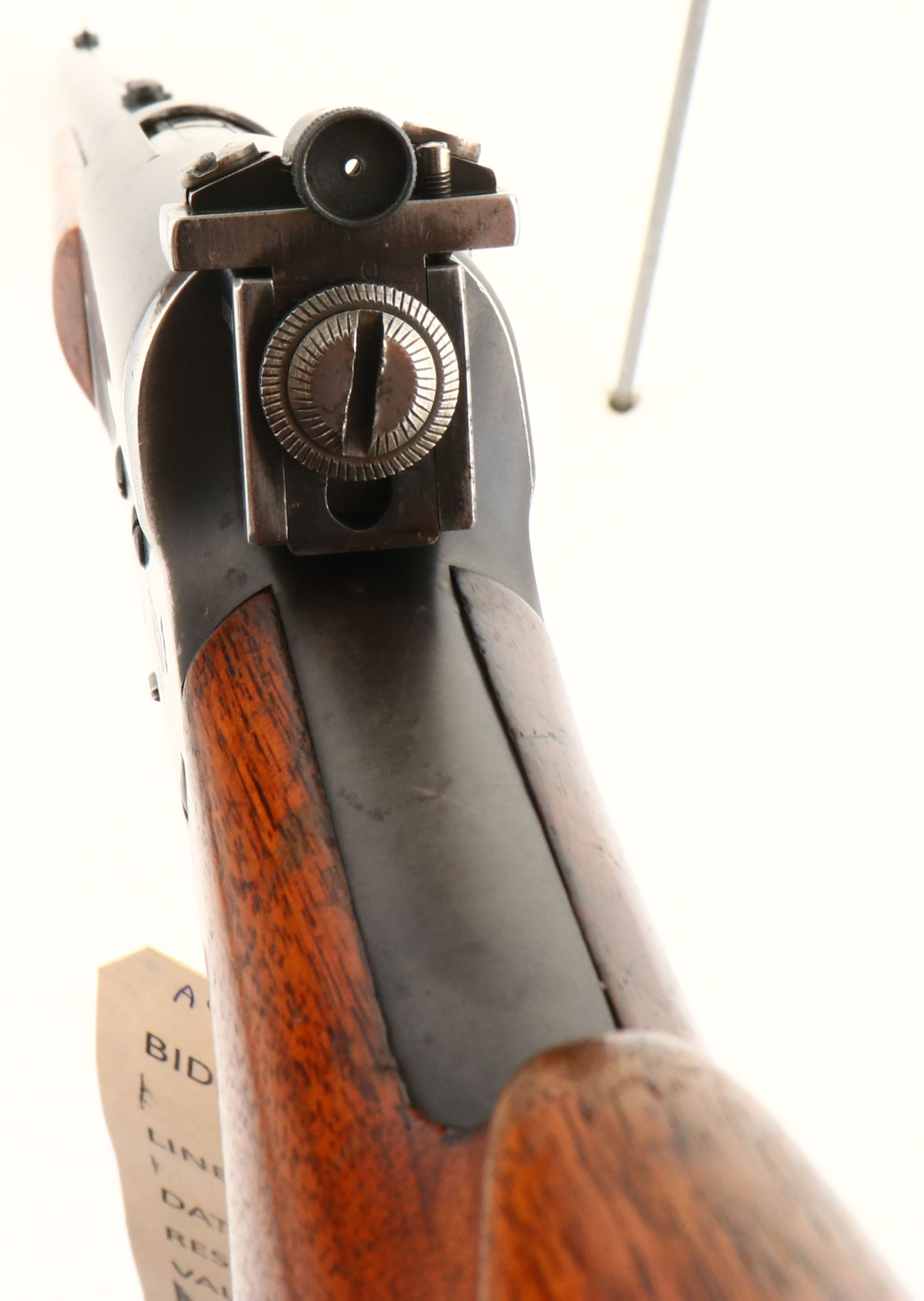 Remington, Model 81, 32 REM CAL, MFG. 1938, SN: 6153, Semi-Auto Rifle, 22'' barrel. Early production rifle carrying the early generation beavertail wood. The original wood stocks are very good, with numerous minor scrapes, scratches & contusions. The original finish on the stocks is flaking & wore thin. An added layer of finish was applied, which has also worn thin at the wrist & belly of the stock. The original metal blue finish rates 75% on the barrel, 60% on the receiver, with much of the wear to belly of the receiver & mag, which is worn silver. The blue is also toning a bit plum as it ages. The receiver is fitted with a Redfield receiver sight, while the barrel carries a blank at the rear sight provision & a Marble Sheard front blade sight. Bore is very good, bright & clean, but with a few areas of roughness. Stock carries the Remington checkered metal buttplate. 5 rd fixed magazine. Sling loop placed in flat of pistol grip. A well used, but still great early 81 rifle. FFL or C&R Req. - Value: 500 to 800