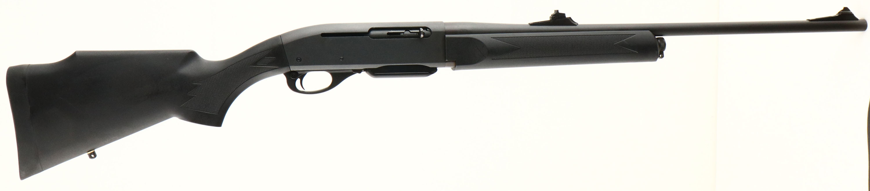 Remington, Model 7400 WeatherMaster Synthetic, CAL:30-06 SPRG, MFG: Modern, SN: C8053779, Semi-Auto Rifle, 22 1/4'' round barrel. The original checkered & flat pistol grip synthetic stocks are excellent & solid, with just a couple of tiny handling rubs. The original metal matte gray/black finish 99% overall. Bore is excellent. The receiver was previously mounted with a scope, with the four factory screw hole provisions currently left open. The barrel carries original adjustable rear & ramp front sight. Stock carries the Remington solid rubber recoil pad. Sling studs. Original detachable mag. Comes with the safety locking tool. Basically a nearly new old stock rifle. FFL Req. - Value: 600 to 800