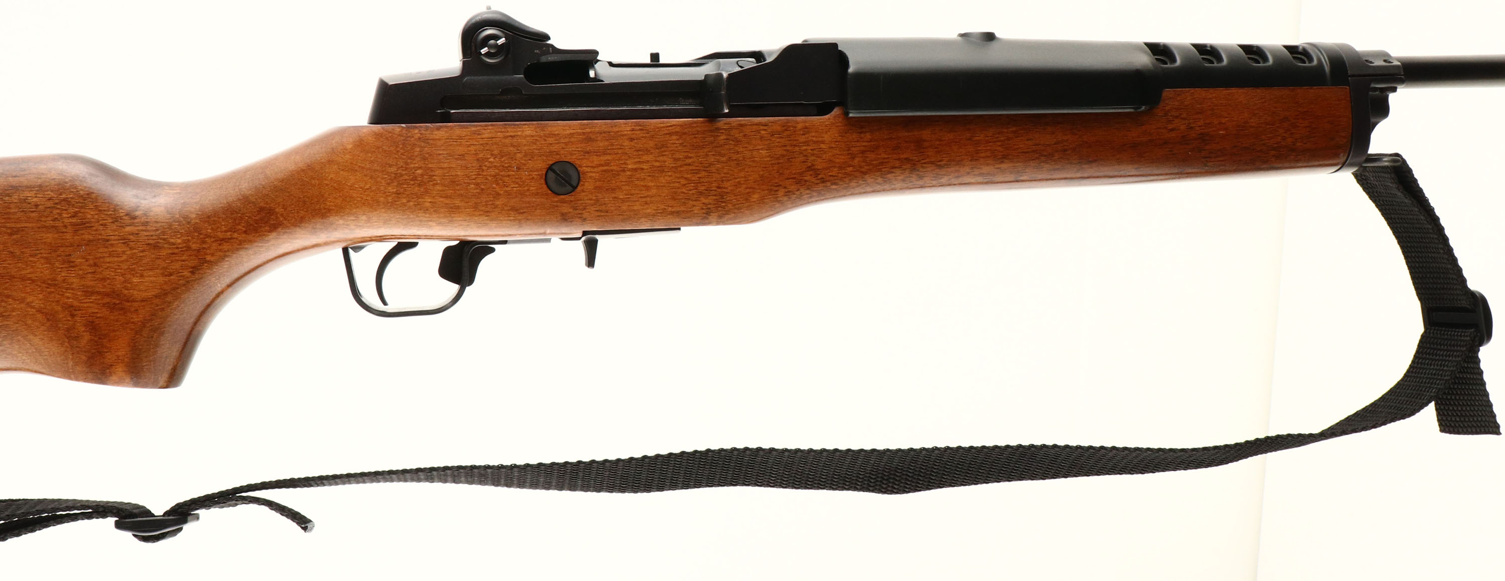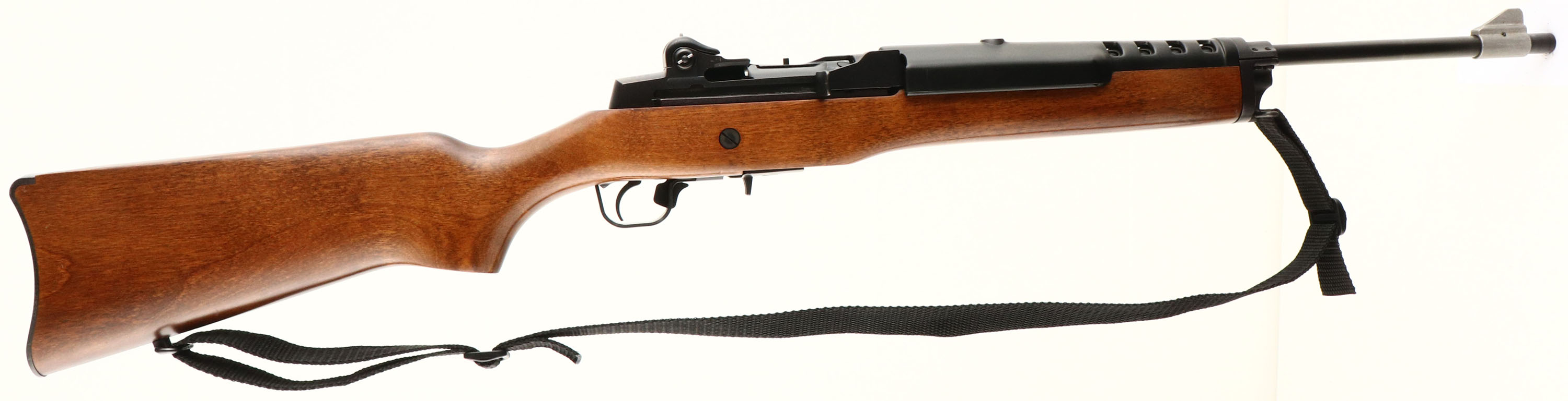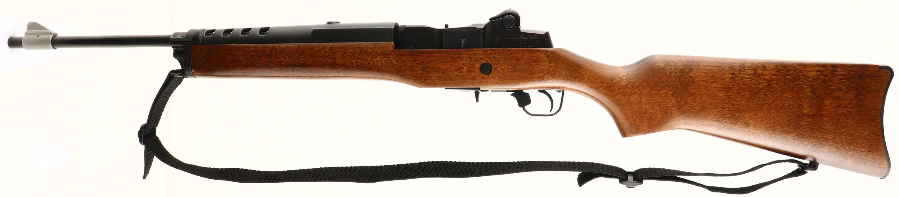 Ruger Model ''Mini 14'', CAL: 223, MFG: 1996, SN:186-71456, Semi-Auto Rifle, 18 1/2'' round barrel. The flat pistol grip wood stock is excellent with a couple of light surface blemishes to the original finish. The original metal blue finish rates 99%. Bore is excellent. The rifle carries the original adjustable receiver & large blade front sights. Stock carries a smooth plastic carbine buttplate. Sling swivels, with nylon sling. Detachable factory mag. Excellent overall condition. FFL Req. - Value: 800 to 1200