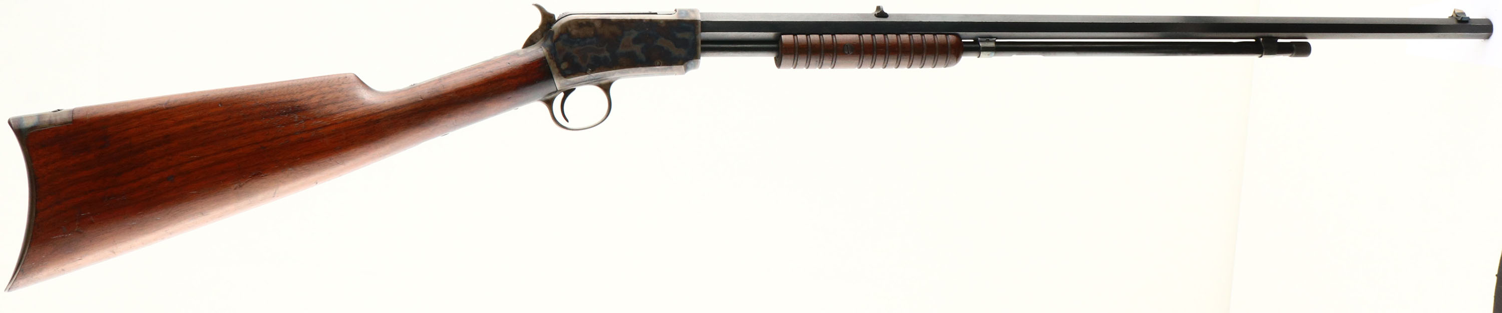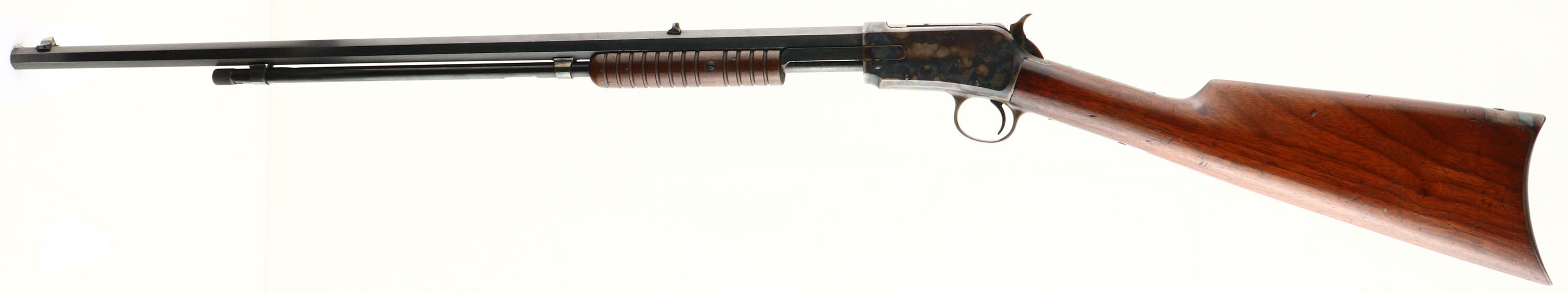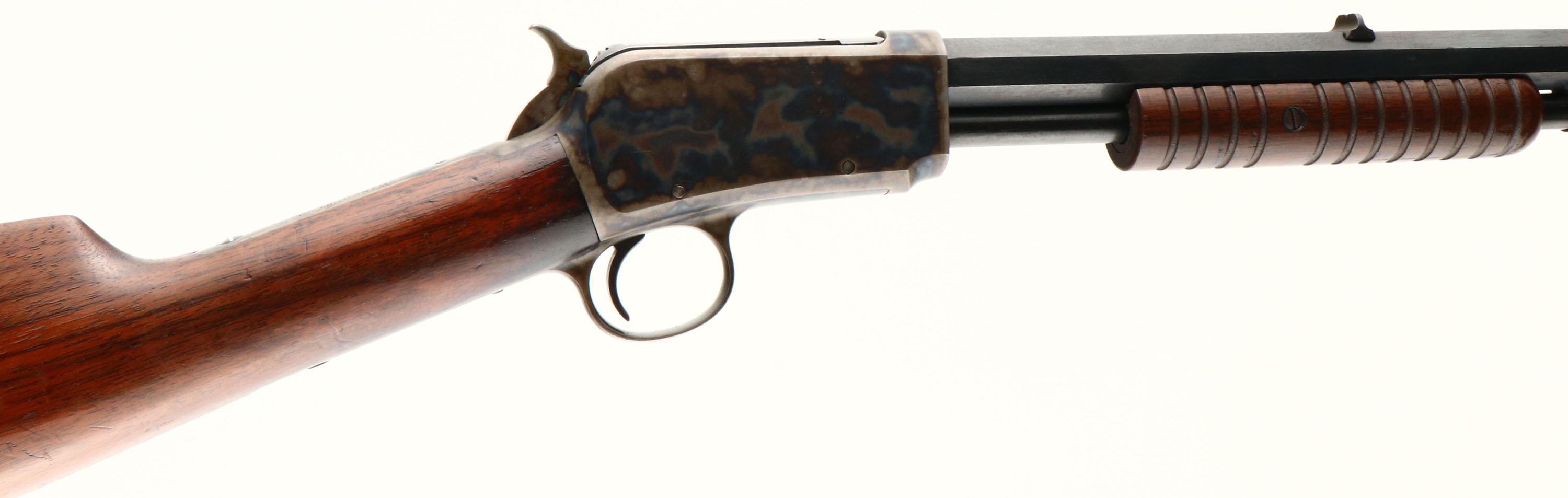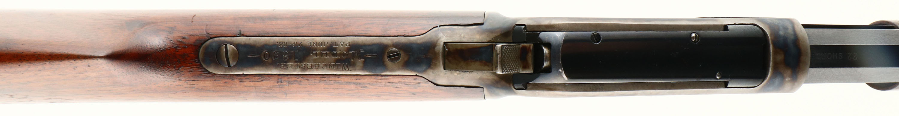 RARE Winchester, Model 1890 1st variation (Antique), Marked .22 SHORT Cal., MFG. 1891 2nd year production, SN: 3324, Pump Action Rifle, 24 1/2'' Octagon tapered barrel, This rifle has two very early features that not all 1st variation rifles possess. The first is the 24 1/2'' length barrel, rather than the later 24'' barrels. The second is the 1st barrel inscription sometimes referred to as the broken ''D'' inscription by collectors. The broken ''D'' refers to the fact that the ''D'' in manufactured is not complete due to a flaw in the roll dies. The dies were later replaced with a new set of dies producing the same 1st style inscription, but with a complete ''D'' stamping. These early features are discussed in detail in Ned Schwing's book 'Winchester Slide-Action Rifles'. The metal finishes on this rifle appear to have been very nicely & professionally restored. The original wood stocks are excellent & solid, retaining most of the original finish. There is some use wear & thinning at the wrist & several minor handling marks. The forend ring edges are still very sharp. The metal blue finish on barrel & mag was professionally restored to Winchester standards & rates 95%, with most wear loss along the flat edges of the barrel. The case-hardened receiver, hammer, trigger guard & crescent metal buttplate were also properly restored & re-hardened, all display strong & vivid case-colors. Bore is very good, Factory sights. Tight action. Extremely collectible early 1st variation, in short only caliber & with rare very early features. Beautiful antique rifle! Antique No FFL Req. - Value: 3000 to 6000