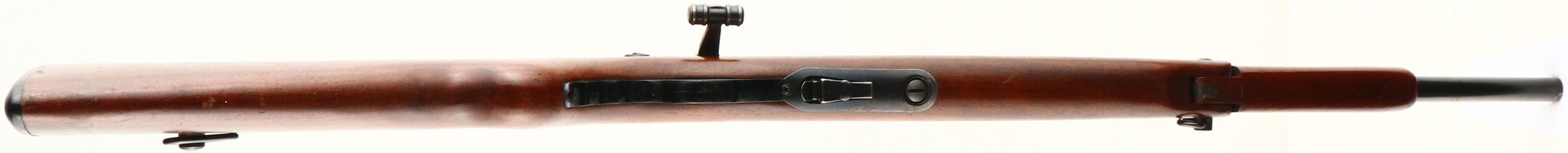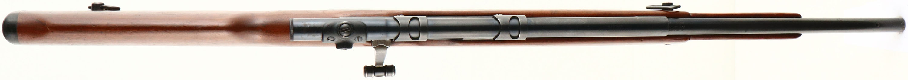 Mossberg, Model 142-A, CAL: 22 S,LR, MFG: 1949-57, SN: NONE, Bolt Action Carbine Length Rifle, 18 1/4'' barrel. The original round knob Monte Carlo stock style is excellent, This model has a unique fold-down foregrip, with this particular rifle having the very early wood version, as the later versions switched to plastic. The stock displays scrapes & contusions to the original finish. The metal blue finish rates 85% overall, with some additional wear on the floorplate. Bore is excellent. The receiver holds the original Mossberg No. M4d 4 Power scope, while the back left side of the receiver has two open holes from previous mounting of the receiver sight. The barrel has no open sights as the front sight has been removed. Stock carries a grooved plastic buttplate. Sling loops mounted on the left side of stock. Detachable 7 rd mag. FFL or C&R Req. - Value: 200 to 400