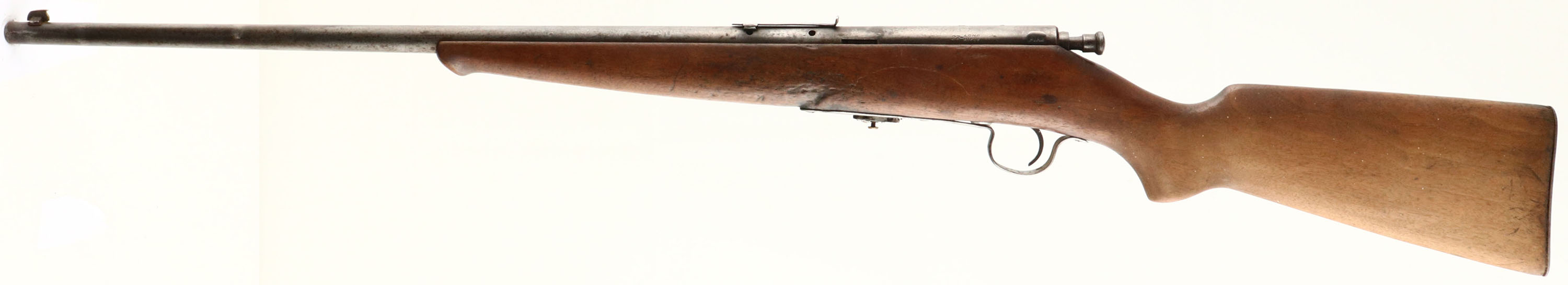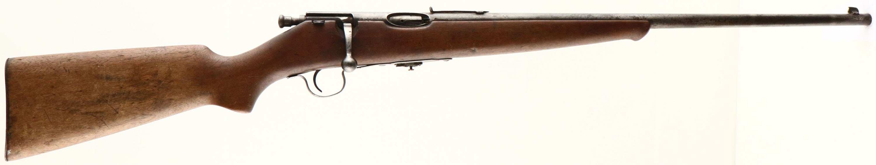 Savage Arms Corp, Model Sporter (23A), CAL: .22 LR, MFG: 1923-33, SN: 93443, Bolt Action Rifle, 23'' round barrel. The original flat pistol grip wood stock, with schnabel forend is good & solid. The original finish has mostly worn away & need to be reoiled. The stock has numerous small to large contusions, scrapes & scratches. The metal blue finish has worn gray, with lots of brown spotting & some rust pitting. The barrel has what appears to be two bulges at 2'' & 7'' from muzzle & has a barrel liner that renders the bore very good & clean. The receiver carries two factory screws for possible sight or optic mounting. The barrel carries an adjustable rear sight missing the elevator & a front blade sight, with two open holes on the left side of the barrel under the rear sight that appear to be from a previous scope mounting. Buttstock carries an original Savage smooth metal buttplate. The original detachable mag is missing the original pull tab & has a brass soldered to the bottom to aid in mag removal. FFL or C&R Req. - Value: 50 to 150