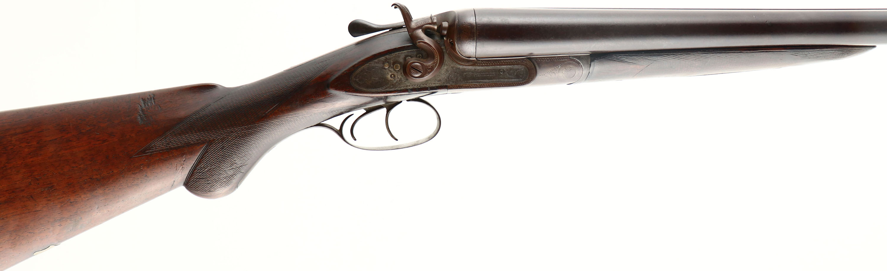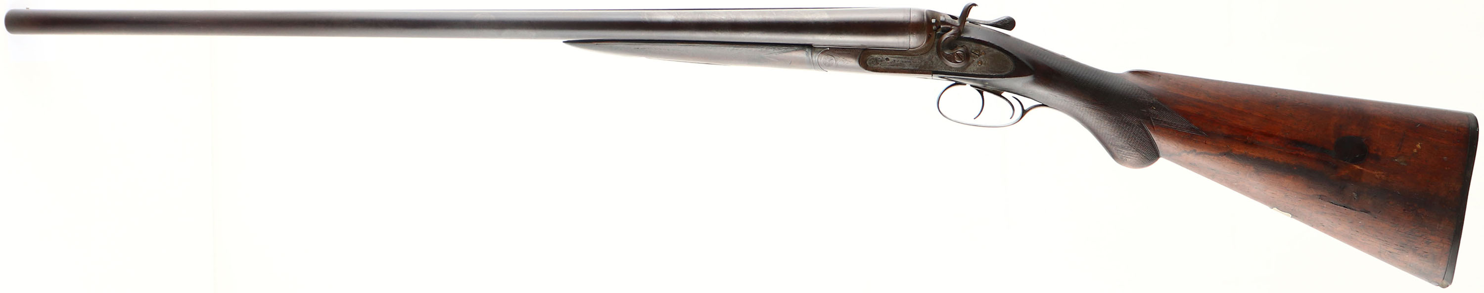 J.P Gemmer, Model 730, CAL: 10GA, MFG: 1890's-1915, SN: 39, Break Action SxS Shotgun, 30'' Laminated Steel barrels. The side plates are marked ''J.P GEMMER''. Birmingham proof marks on the water table. The barrel rib is marked ''JP GEMMER SANT LOUIS MO LAMINATED STEEL''. The original checkered round knob pistol grip & ebony tip forend are good & solid. There are a couple popped grains, edges chips, thin checkering, scrapes, dings & darkening from protective oils added over time. There is a blank silver shield nameplate in the belly of the stock. The laminated steel barrels have fully toned to a brown patina, with consistent spotting. The receiver & side plates have worn to metal gray & toned to a brown patina. The receiver, side plates, trigger guard, hammers, break lever & forend release lever all display ornamental scroll engraving. Some areas of the engraving are beginning to wear thin. There are bid vignettes on both side plates, behind the hammers. Bores are fair, rough, with pitting near the chamber. The solid rib holds a single front bead. Stock has a carved & checkered hard rubber buttplate, with a couple edge chips. Hammers & triggers function properly & lock up tight. Break lever has to be manually reset to the middle after breaking the barrels. In the mid 1800's Gemmer & a group of gunsmiths took over the Hawken shop in St. Louis. He went on to run the business until 1915, before passing in 1919. FFL or C&R Req. - Value: 800 to 1300