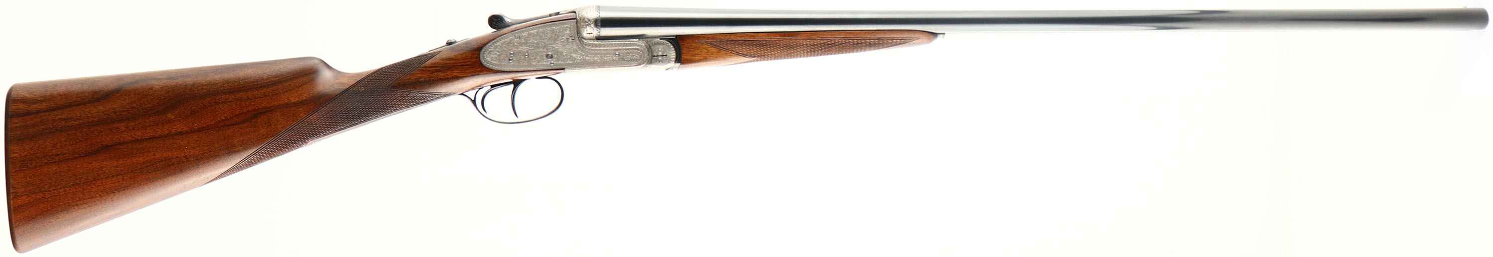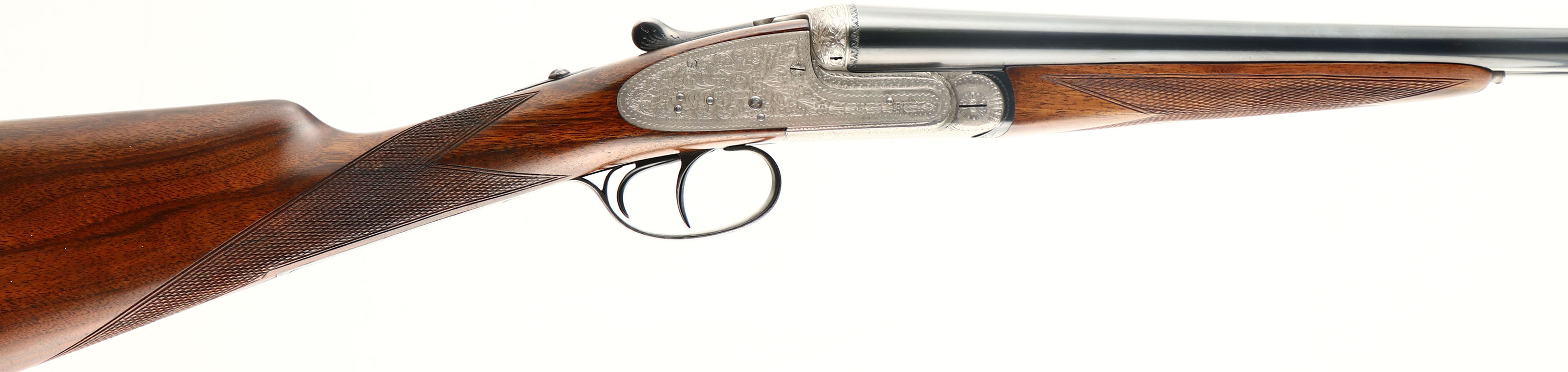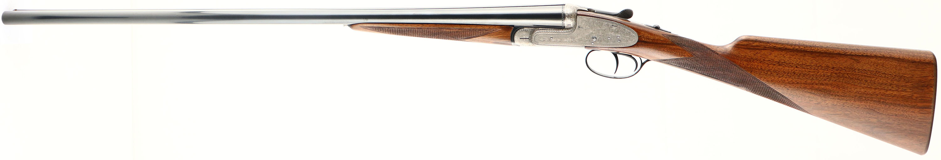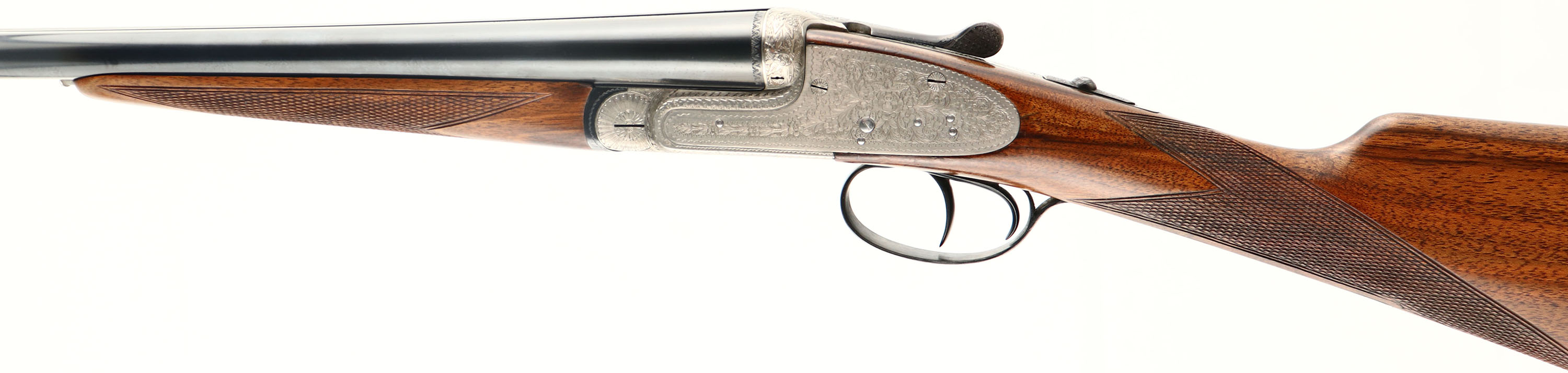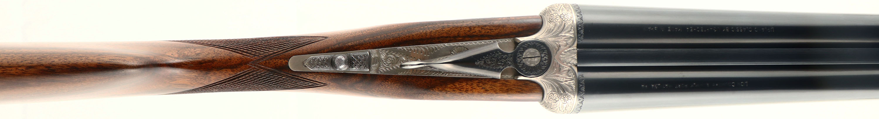 Ugartechea (Spain), Upland Classic, Grade V, CAL: 20GA, MFG: 2003, SN: 35-03-789-03, Break Action SxS Shotgun, 28'' barrels. The original checkered straight grip wood stocks are excellent. The hand applied oil finish is excellent. There are only minor handling marks & some light scrapes. The original metal blue finish on the barrels rates. 98%. The coin silver finish on the receiver is excellent. The receiver is fully engraved with intricate floral scroll work. The break lever, trigger guard, barrel ends, safety & forend metal components all display the same style engraving. Bores are excellent, with visible striations from use. The solid rib holds a single front bead. No buttplate. Comes with a custom 3-prong tool, to replace the firing pins. A beautiful example of a Spanish SxS shotgun, perfect for small upland game birds. FFL Req. - Value: 2500 to 4500