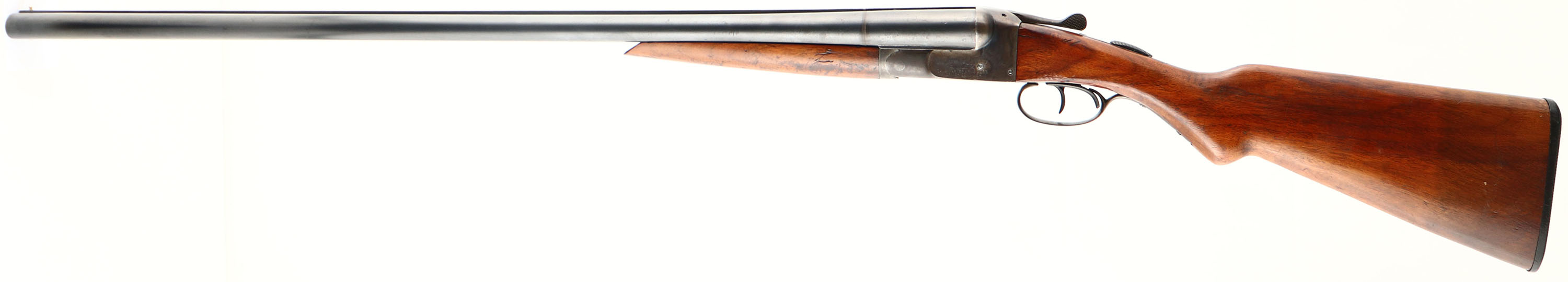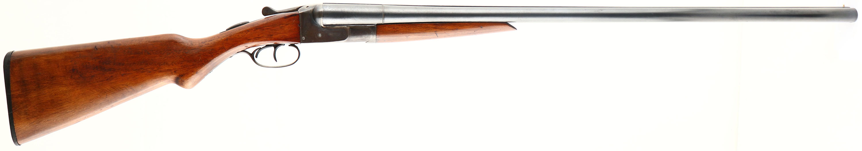 PARTS GUN: N.R Davis & Sons, Ajax Model, CAL: 12GA, MFG: 191-26, SN: D4894, Break Action SxS Shotgun, 30'' barrels. The original round knob wood stocks are good & solid, having been sanded & refinished. There is a crack on the left side, next to the receiver, an edge chip, alongside other smoothed contusions & dings. The metal blue finish on the barrels rates 95%, with spotting toned to a brown patina. The case-hardened receiver retains visible, but faded case-colors, mostly worn to metal gray & toned to a brown patina. Bores are excellent. Solid rib holds a single bead. Stock carries a checkered plastic buttplate. Multiple internal parts issues. Unknown what the issues are. Needs to be inspected & repaired by gunsmith before use. SOLD AS IS NO RETURNS. FFL or C&R Req. - Value: 150 to 300