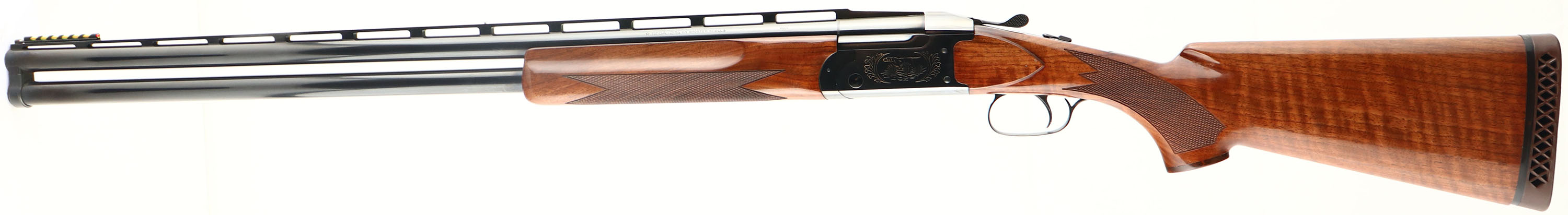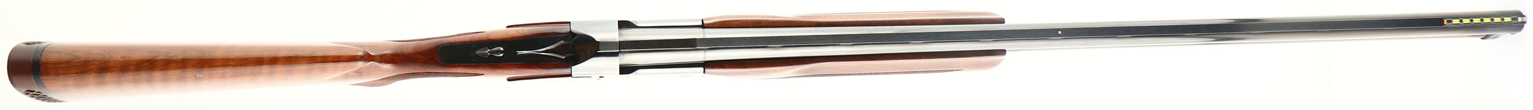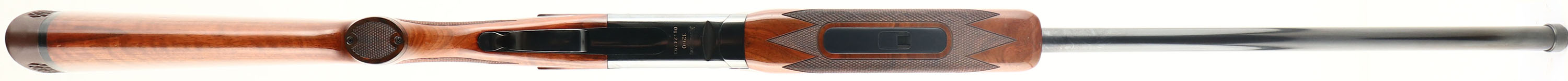 Remington Model 3200, CAL: 12 GA, MFG: 1973-84, SN: OU-24293, Break Action O/U Shotgun, Choke: FULL/IM, 2 3/4'', 30'' barrels with upper ventilated rib. First year production. Both sides of the receiver display a simple engraving of a pointer on the left & a setter on the right, bordered by a simple ornamental patterns. The engravings have a gold wash fill which is thinning or worn off in areas. The original checkered & capped pistol grip wood stocks are excellent, displaying very few tiny handling blemishes to the original high gloss finish. The original metal blue finish rates 98% overall. Bores are excellent & bright. The ventilated rib holds a small silver mid-rib bead & red/green fiber optic bar front sight. Single trigger with selector on upper tang. Buttstock carries a ventilated Remington recoil pad. LOP: 14 1/4'' overpad. An overall excellent & all original classic O/U. FFL Req - Value: 1000 to 1500